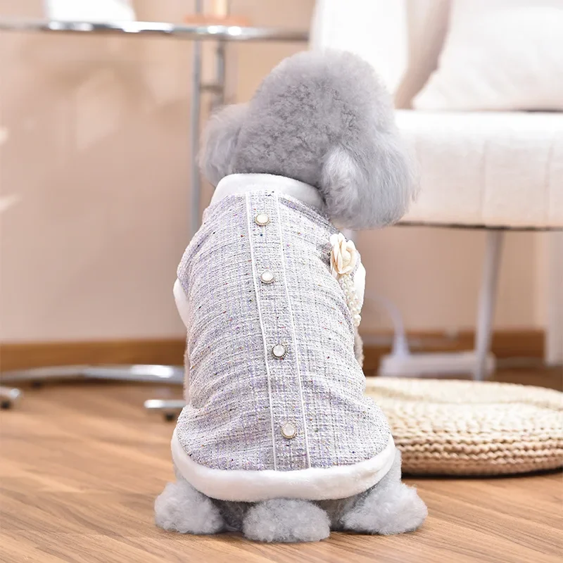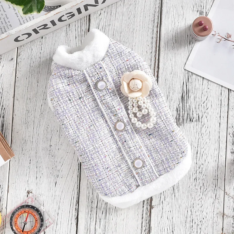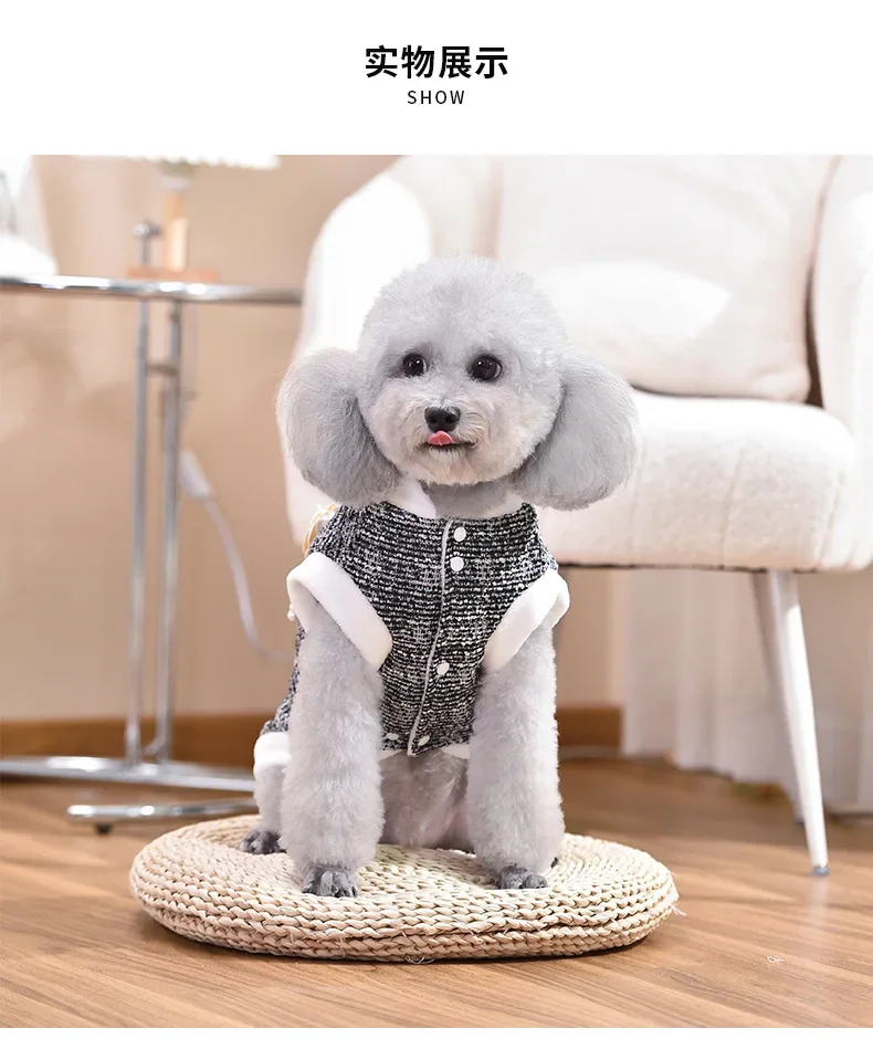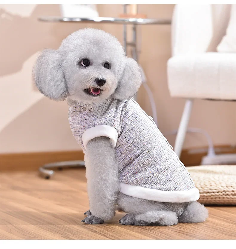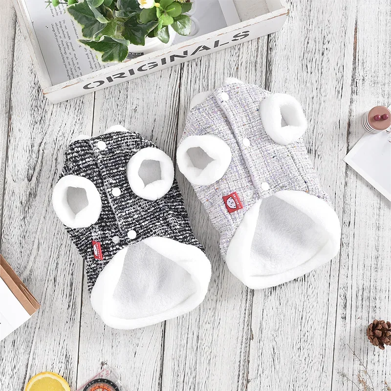 Abrigo de lana con cuello de felpa para mascotas, Parkas cálidas para perros, abrigo de otoño e invierno, ropa para perros pequeños y medianos y gatos, otoño e invierno