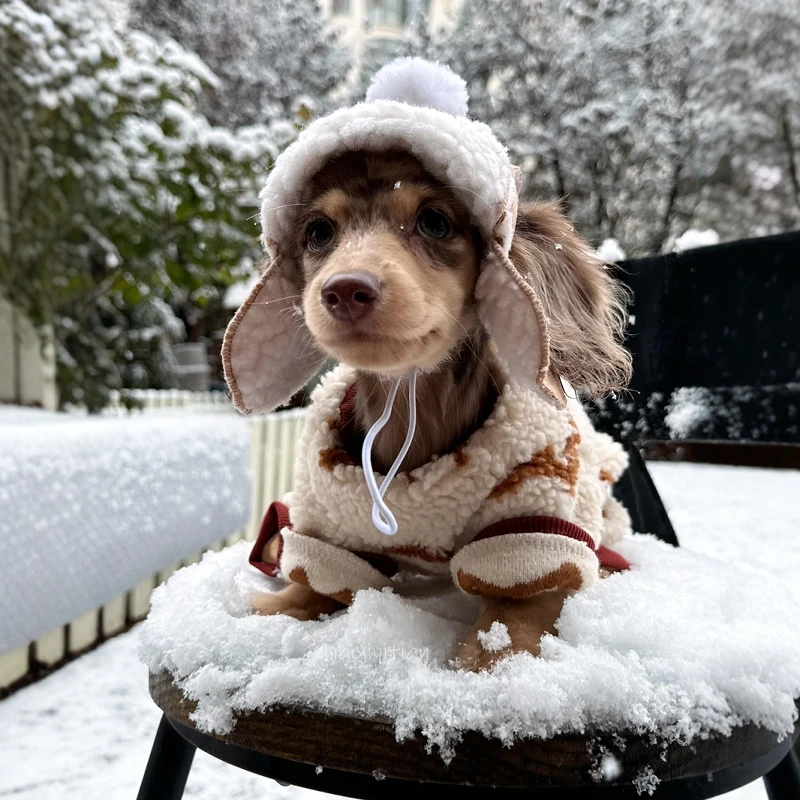 Abrigo grueso de lana de invierno para Dachshund, chaqueta cálida de lujo a prueba de viento Wiener con sombrero, ropa cálida para perros de tejón de 4 patas