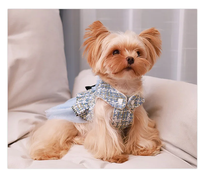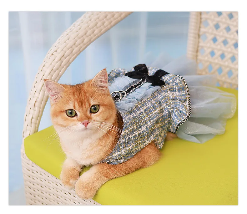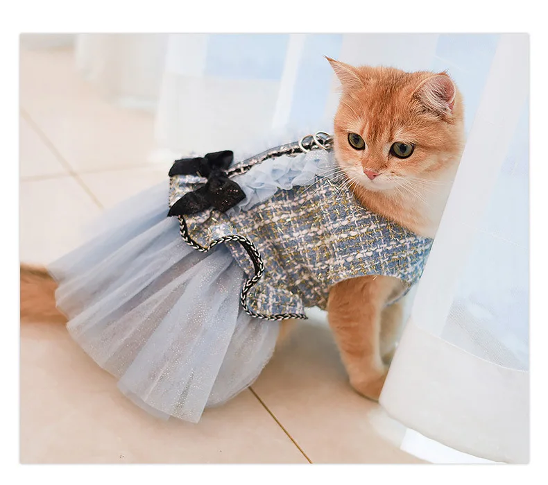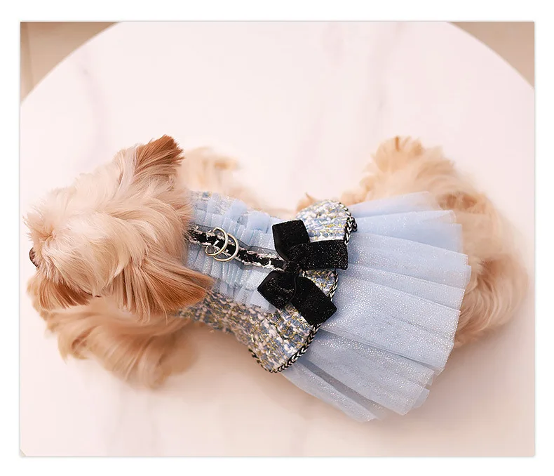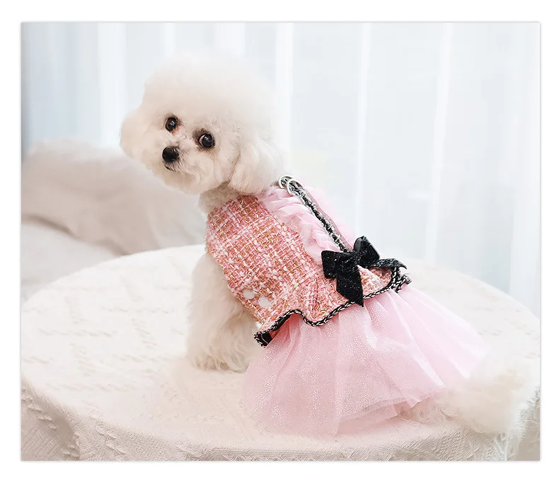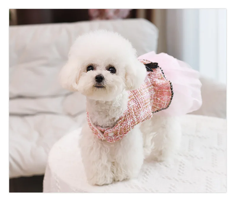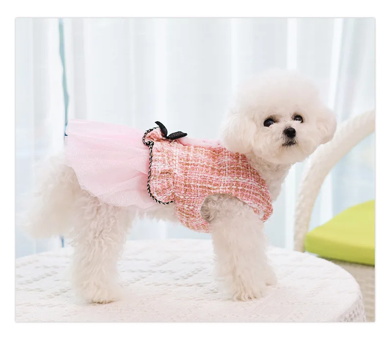 Abrigo de lana para mascotas, ropa de empalme de malla para cachorros, vestido de princesa para gatos, ropa con lazo para perros, ropa de diseñador para perros, Otoño e Invierno