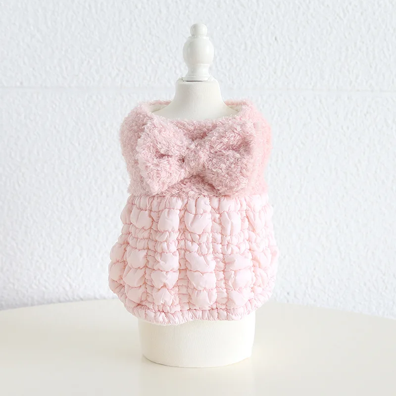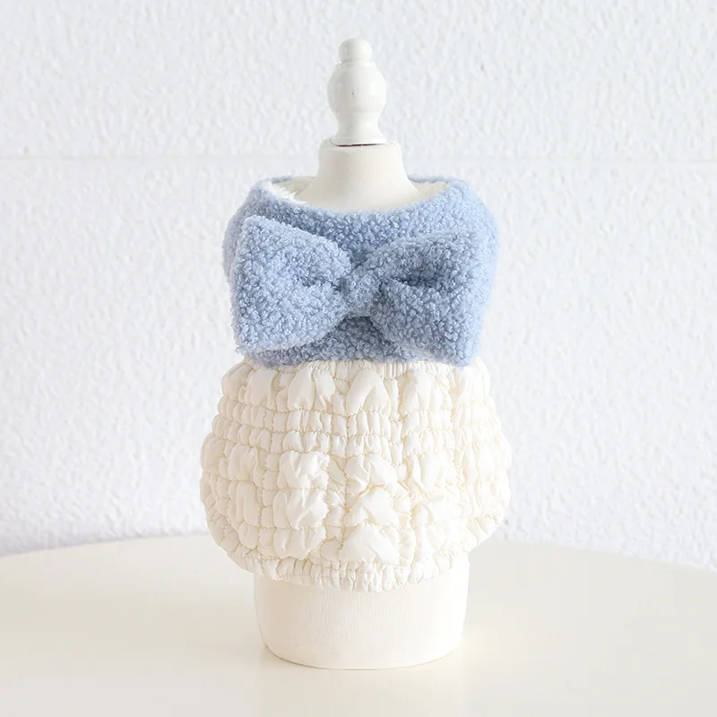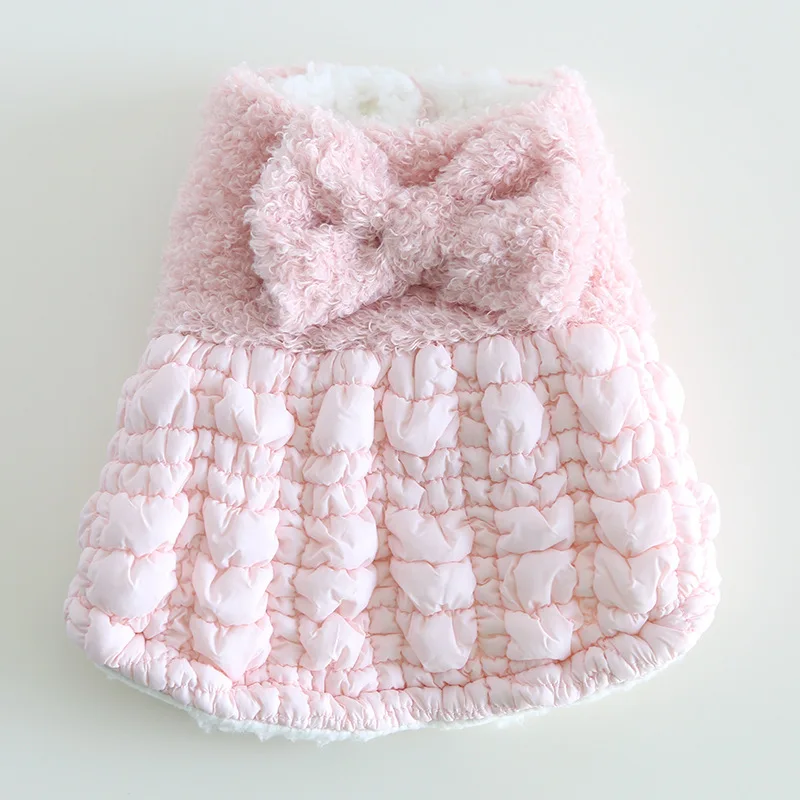 Abrigo con lazo para mascotas, bonita falda de burbujas, ropa para gatos de peluche de otoño/invierno, ropa para mascotas, ropa para perros pequeños, disfraz, suéter para perros