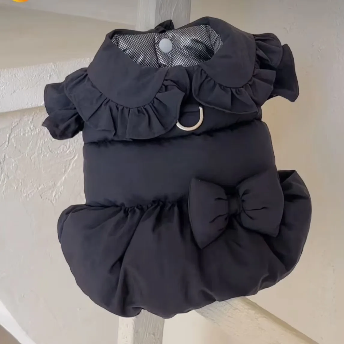Abrigo con lazo de princesa para mascotas, falda de burbuja, ropa de otoño/invierno, ropa cálida de tracción para perros pequeños y cachorros, Otoño/Invierno