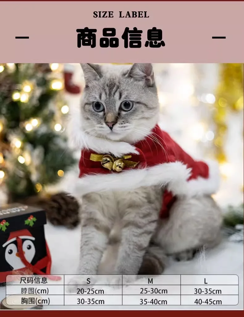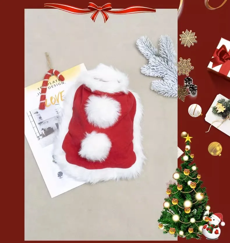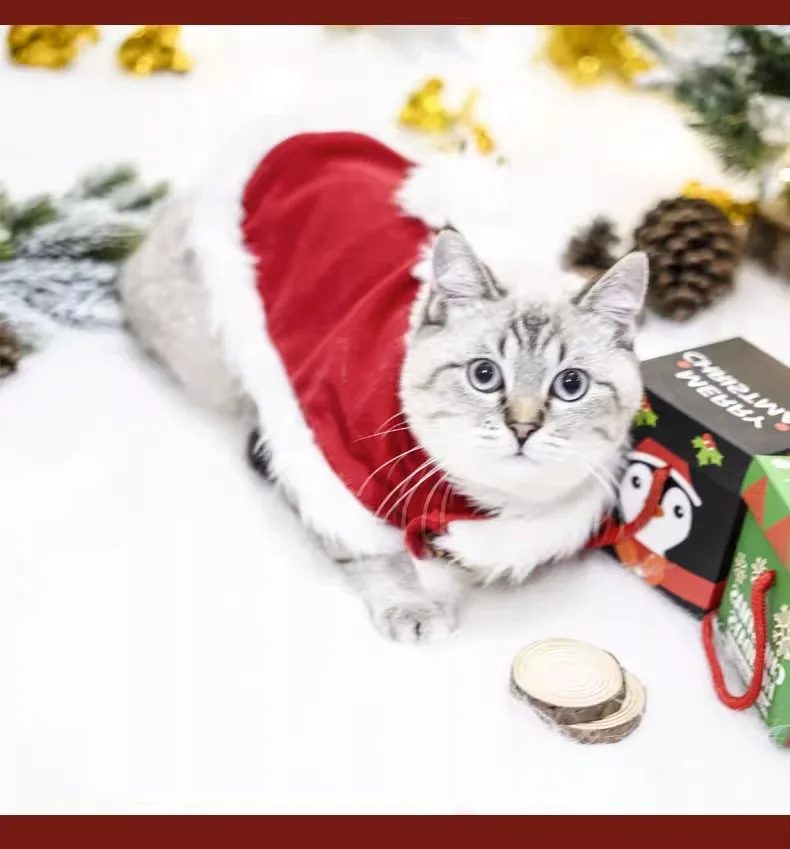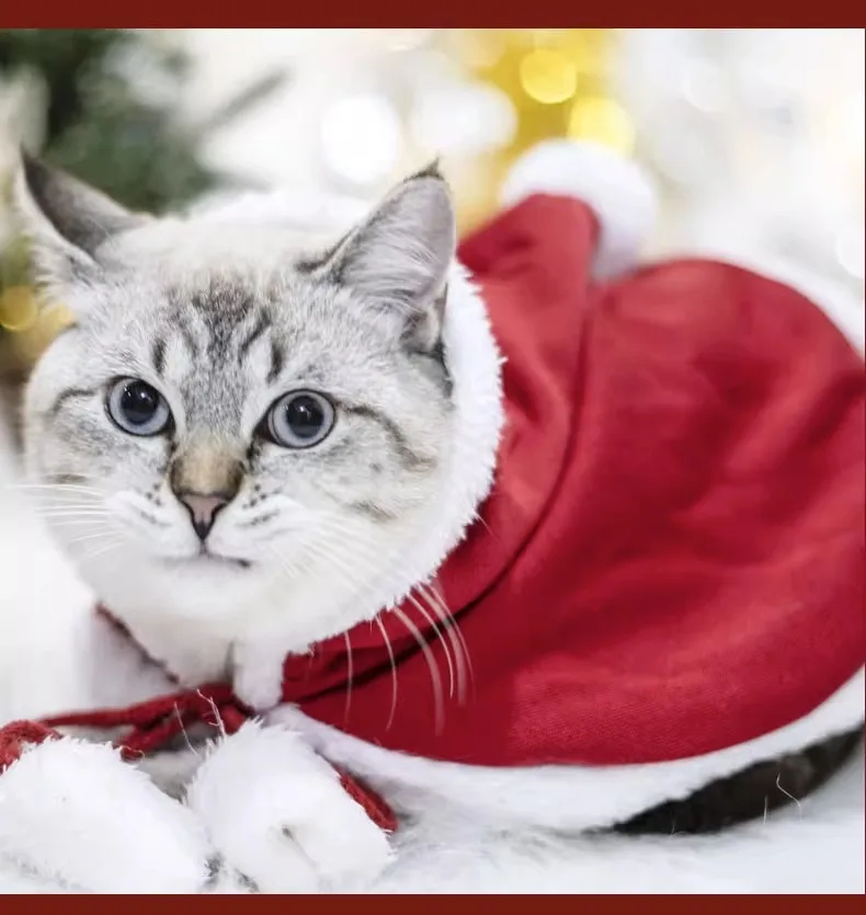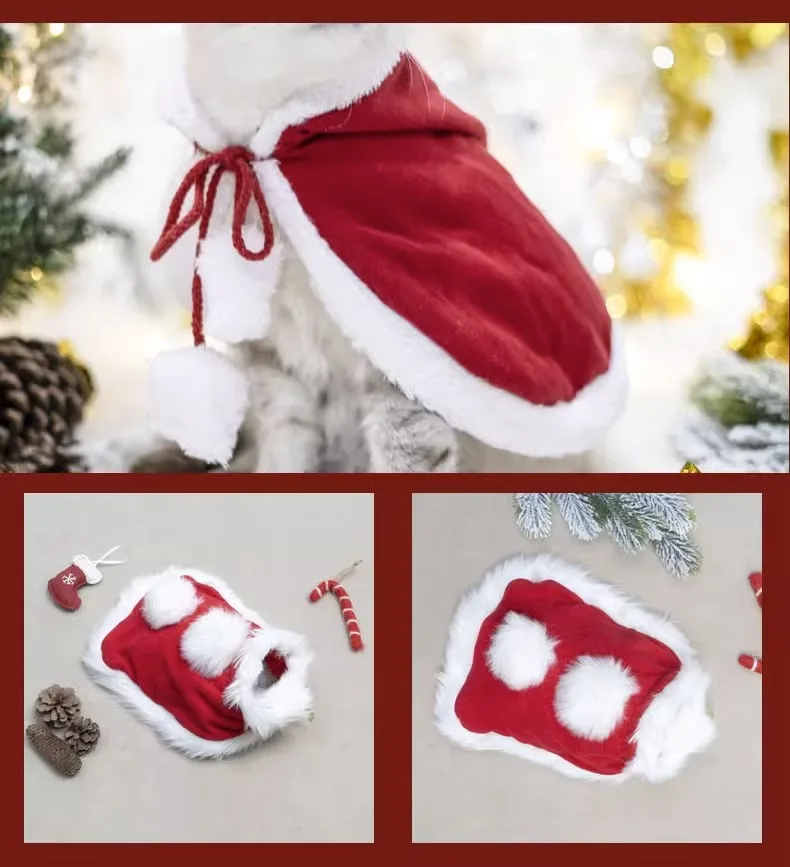 Abrigo de Navidad para mascotas, bonito cuello de felpa, capa para gato de otoño e invierno, traje de Navidad, bufanda con campana para perro, sombrero, capa, ropa para cachorro