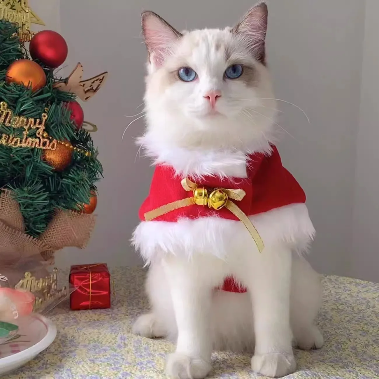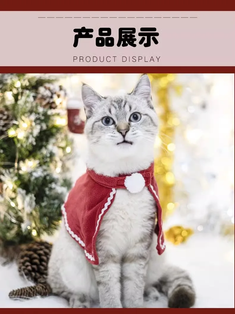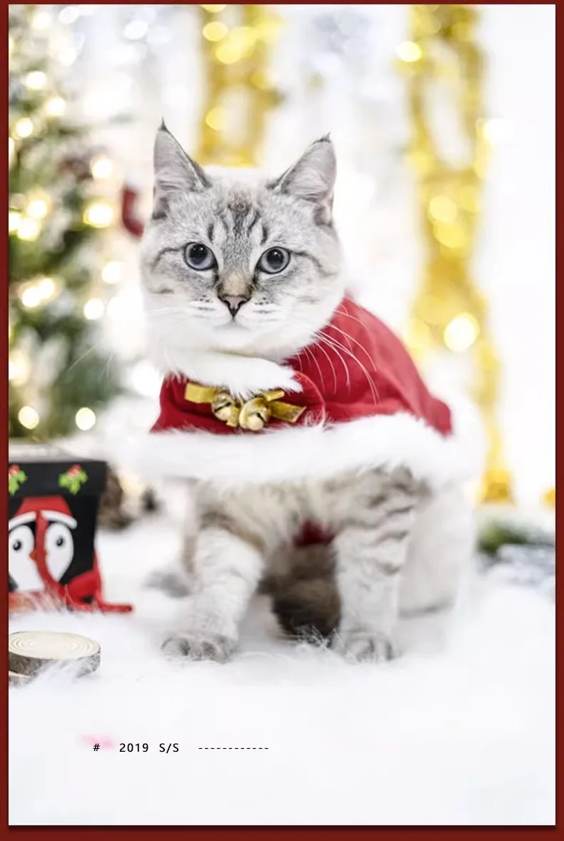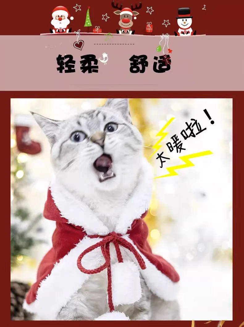 Abrigo de Navidad para mascotas, bonito cuello de felpa, capa para gato de otoño e invierno, traje de Navidad, bufanda con campana para perro, sombrero, capa, ropa para cachorro