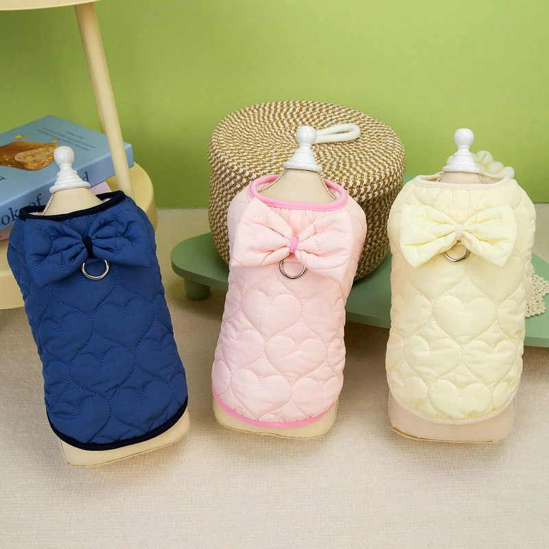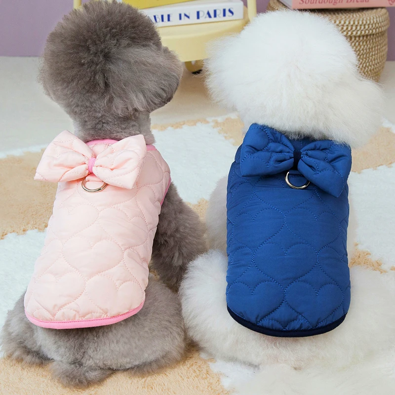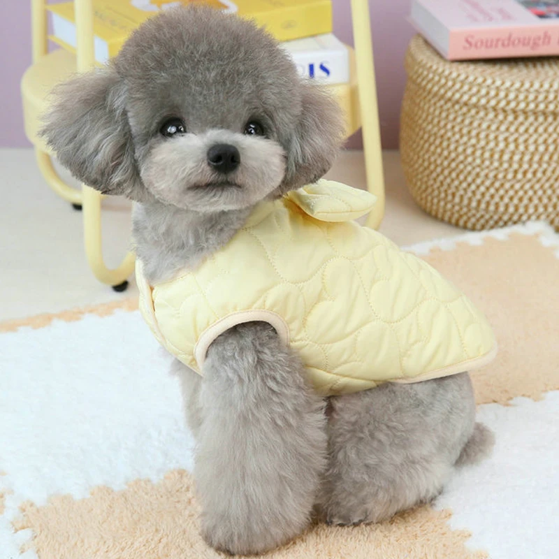 Abrigo con pajarita para perro, chaqueta con burbujas de algodón, ropa para mascotas, chaleco sin mangas para cachorros, chaqueta para perros pequeños, ropa para perros maltés Chiwawa