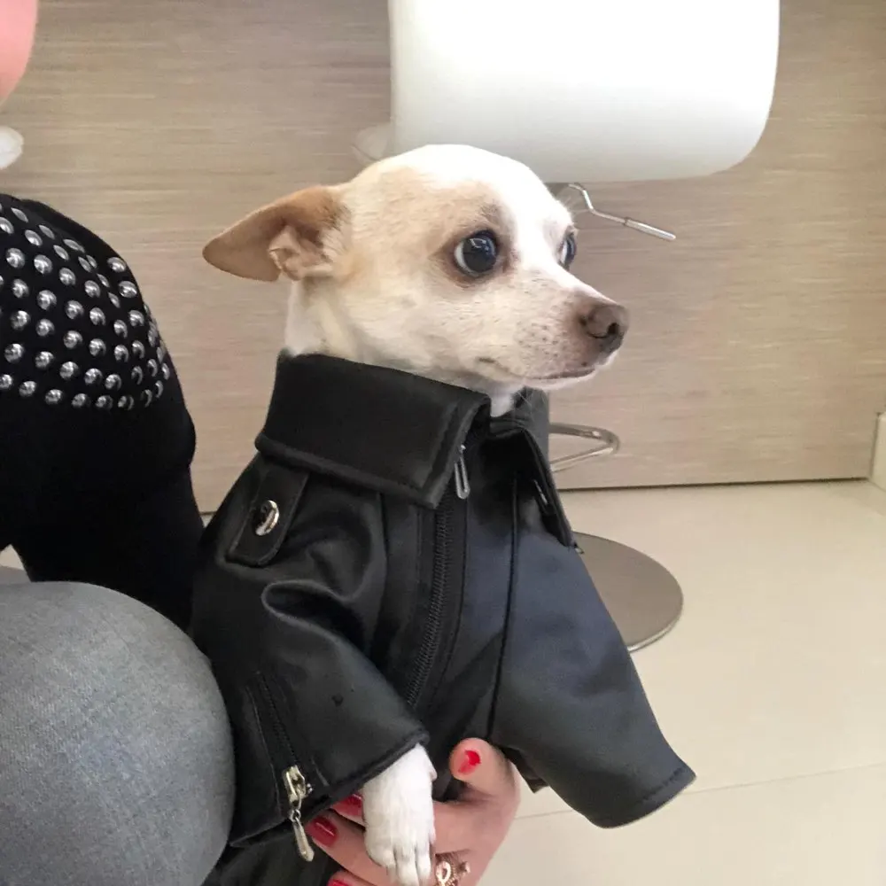 Paquete: 1 chaqueta de cuero de PU para mascotas con patrón de águila de 1.