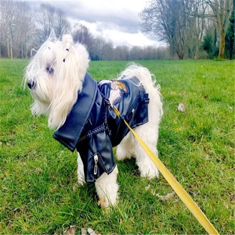Glorioso águila patrón perro abrigo PU chaqueta de cuero suave impermeable al aire libre cachorro prendas de vestir exteriores ropa de moda para mascotas pequeñas ()