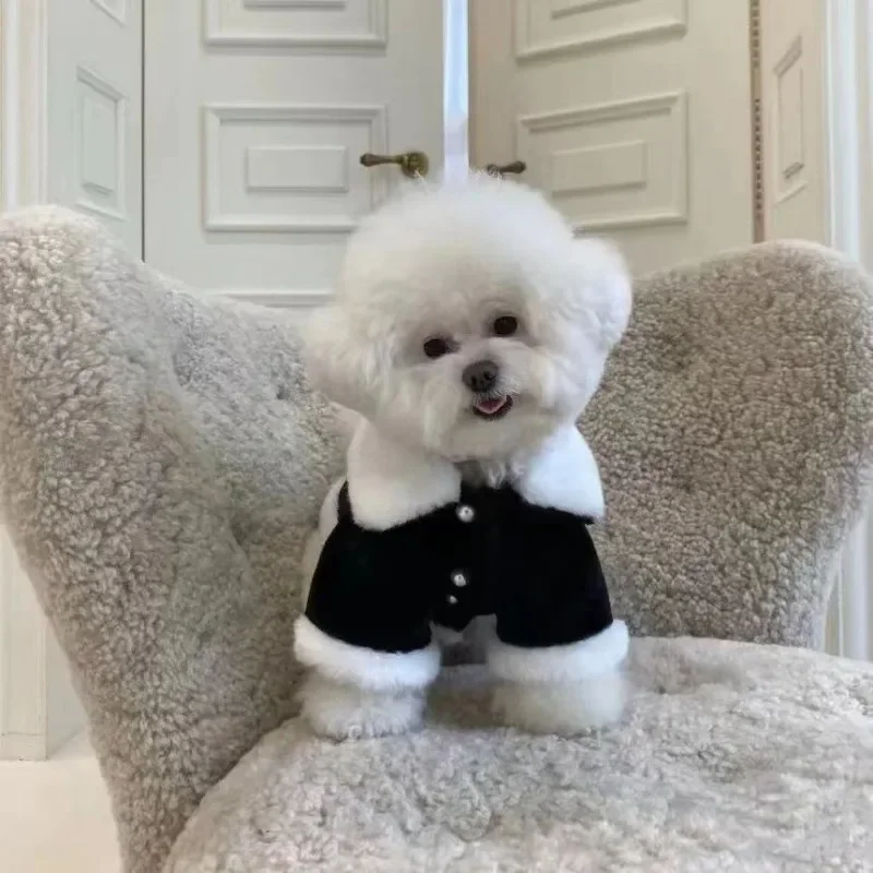 Abrigo de perro de felpa de Color sólido, ropa de perro, cuello de solapa, diseño de perros pequeños, ropa de cachorro dulce Kawaii, ropa cálida de invierno