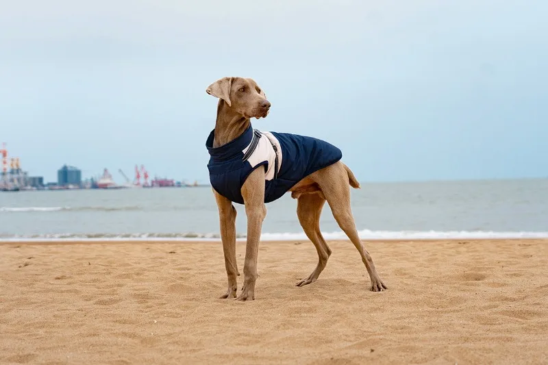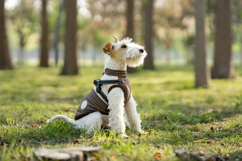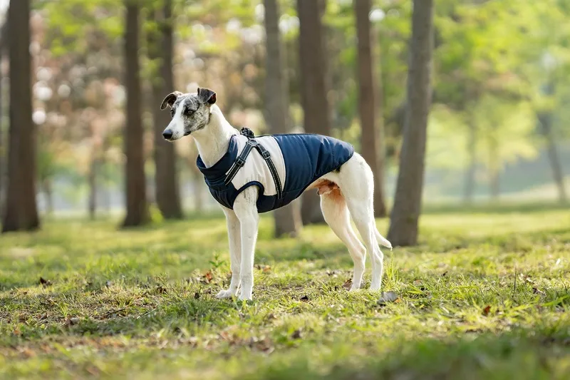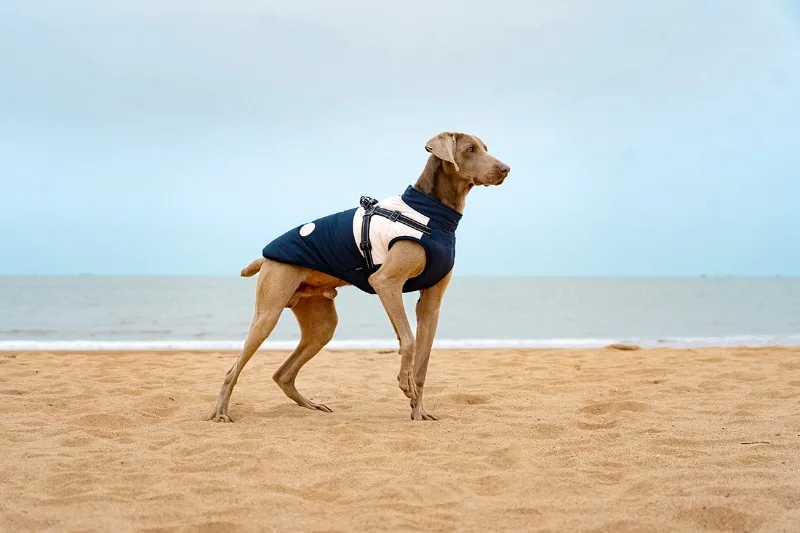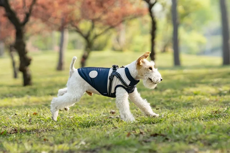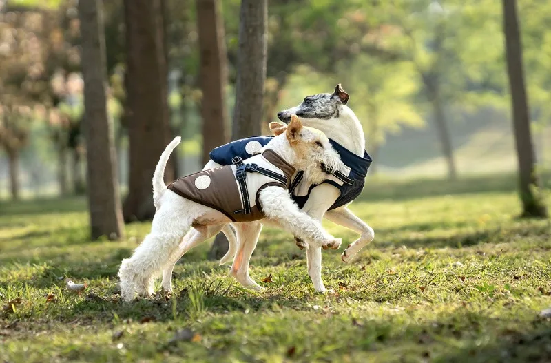 Abrigo para perros al aire libre con anillo, chaleco para perros de otoño e invierno, ropa impermeable con rayas reflectantes para perros, ropa de algodón con forro polar para mascotas