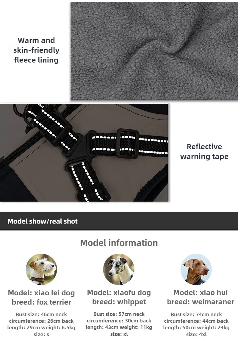 Características: • Busto ajustable, cómodo de llevar, fuerte calidez. • Cremallera de nailon autoblocante • Tejido impermeable • Manténgase abrigado, agradable para la piel y aterciopelado en el interior • Correas de advertencia reflectantes • Anillo de tracción reservado