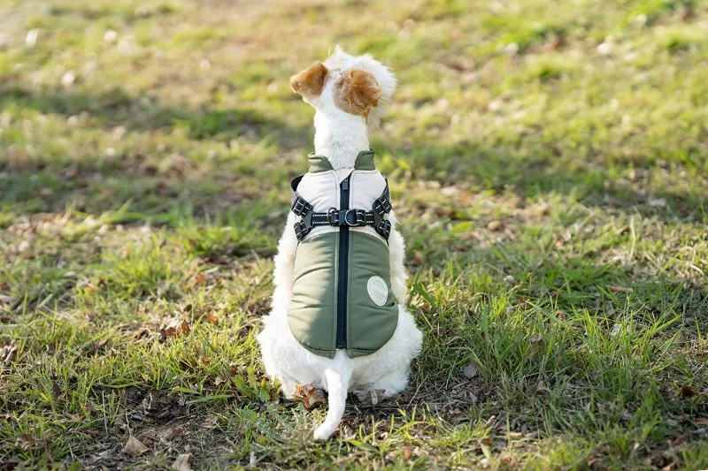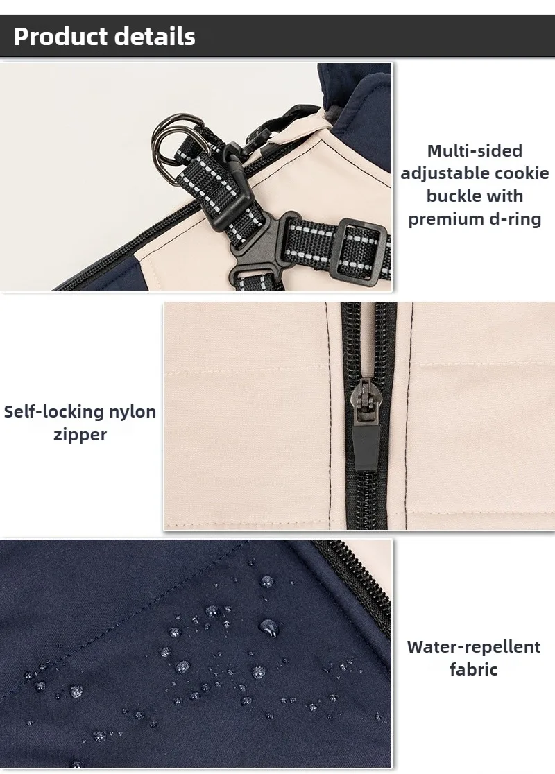 Información del producto Categoría: Ropa para perros Nombre: Chaleco para perros de otoño e invierno con arnés, ropa para mascotas integrada que puede remolcar ropa para perros grandes Material: tela antisalpicaduras + correas reflectantes + hebilla POM Color: verde/azul/marrón Tamaño: XS/S/M/L/XL/2XL/3XL/4XL/5XL