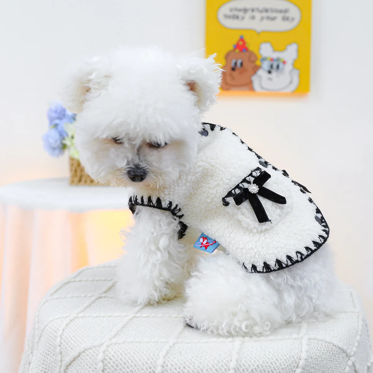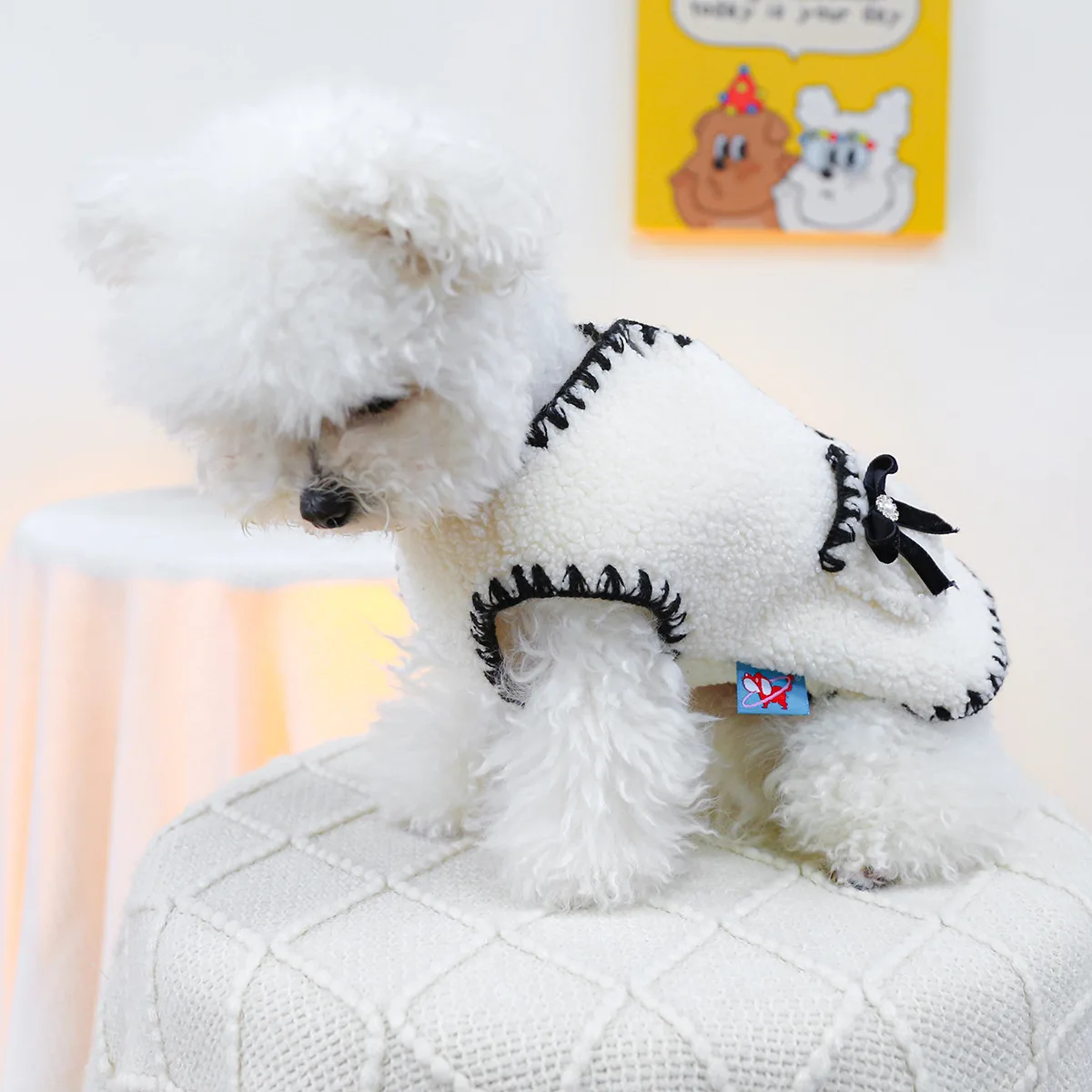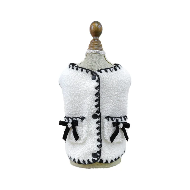 Abrigo de piel de cordero blanco para mascotas, chaleco con lazo para cachorros y gatos, nuevo chaleco de piel de cordero para otoño e invierno, ropa para cachorros, ropa de diseñador para perros