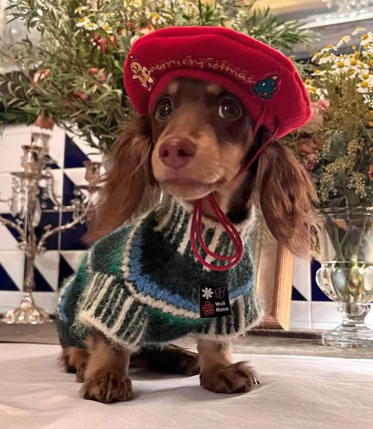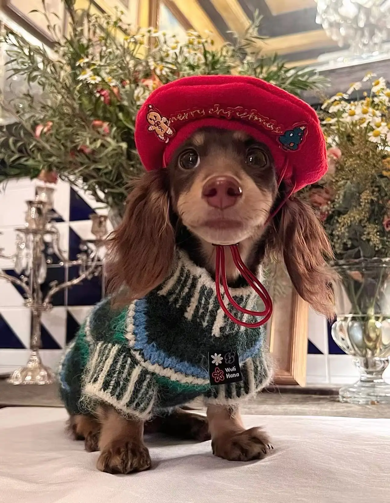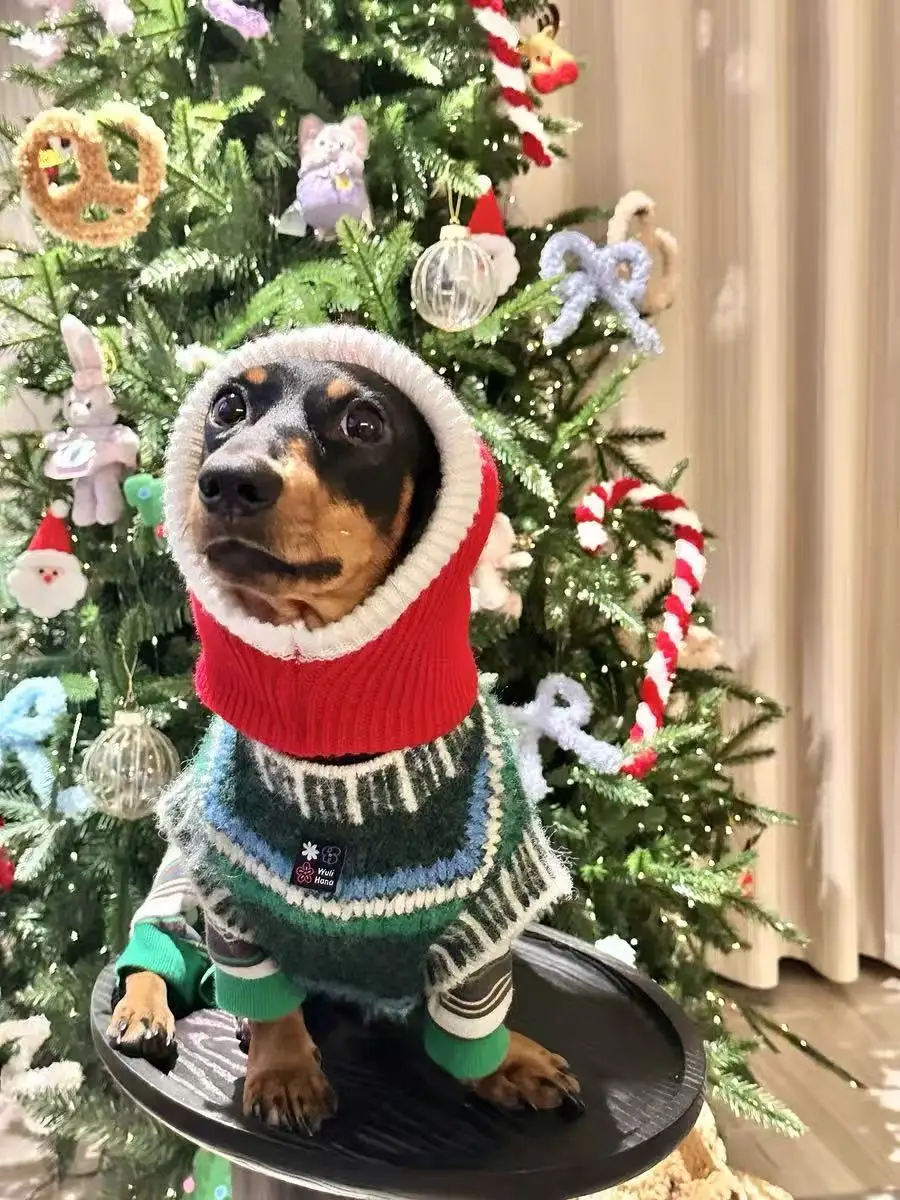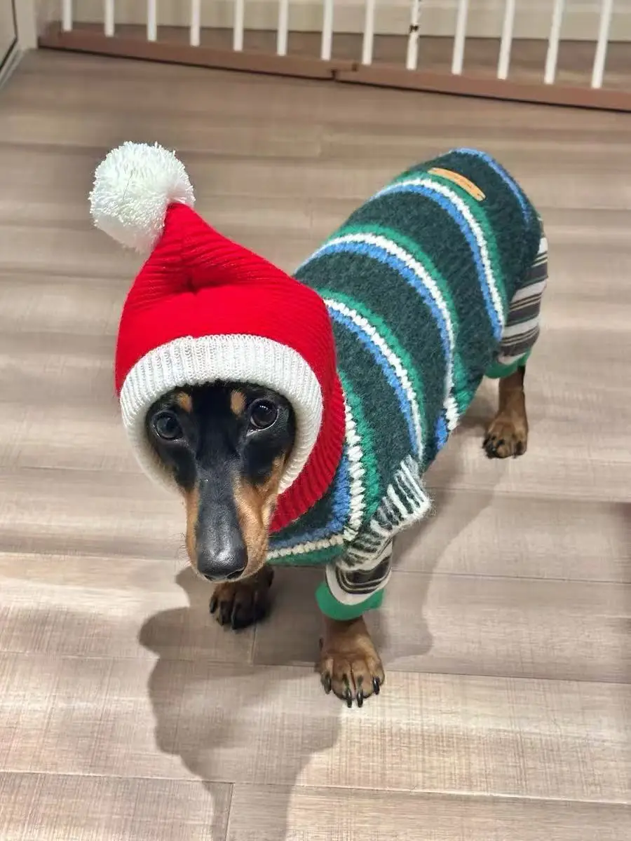 Abrigo de punto hecho a mano de Navidad para perros Wiener, ropa de descanso de otoño para perro Dachshund, chaleco clásico de invierno con suéter británico para vacaciones