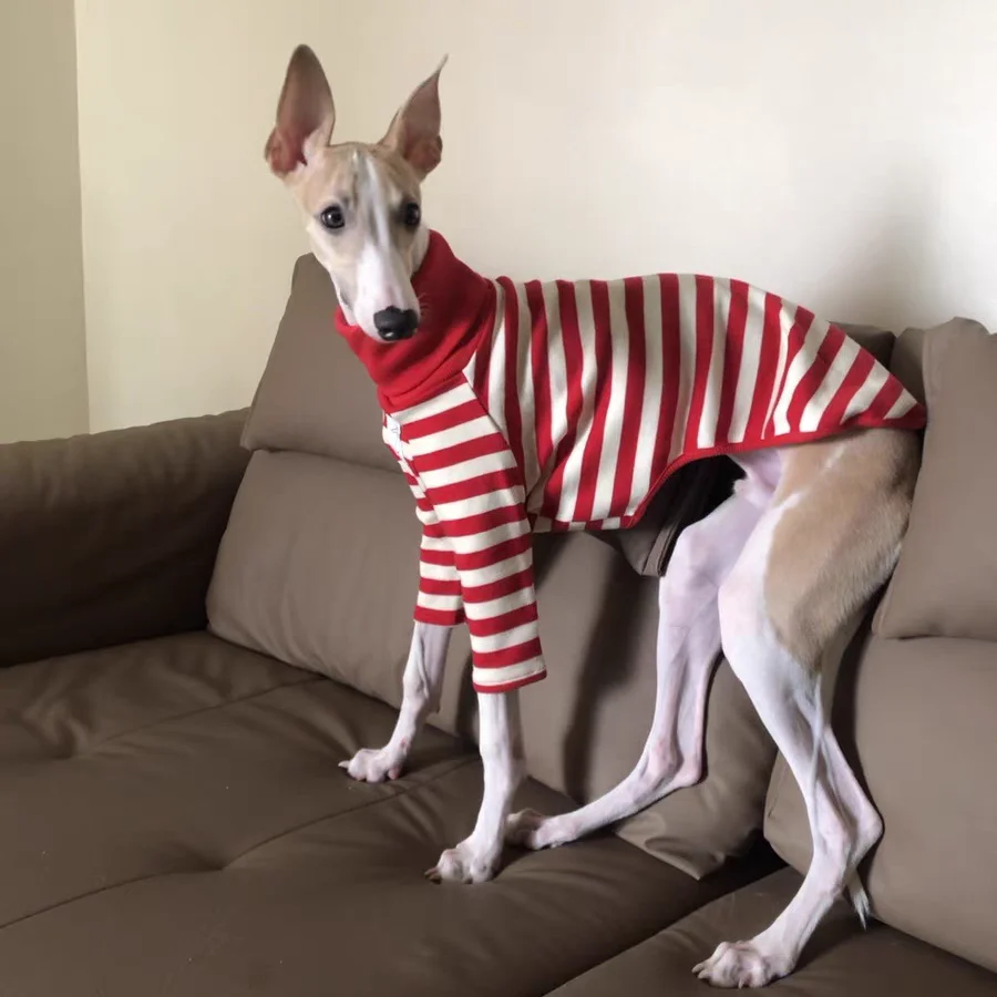 Abrigo rosa clásico de rayas de algodón de cuello alto para galgo italiano Primavera Manga larga estilo retro Sudadera cálida negra para whippet en otoño invierno
