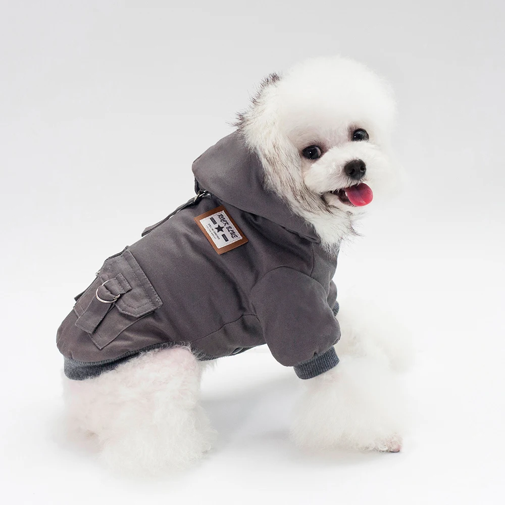 Tipo: abrigo suave para perros, ropa para perros pequeños y medianos, Bulldog francés Pug, chaqueta cálida con capucha para invierno, ropa para mascotas, trajes para perros