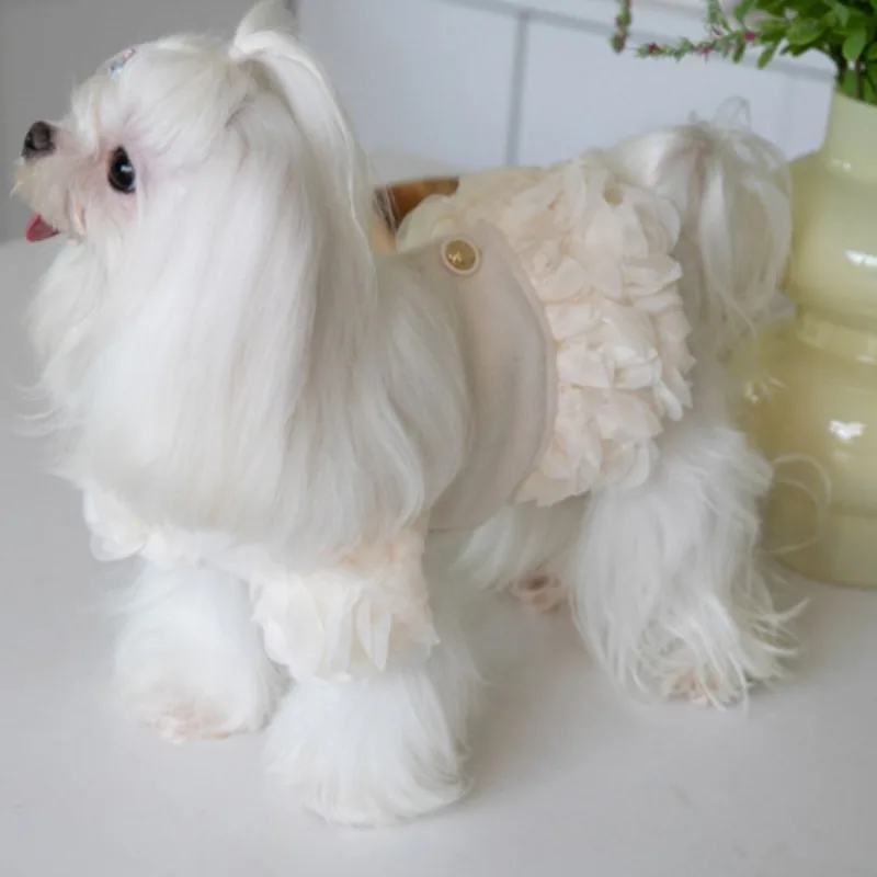 Correas de encaje Beige personalizadas para perros pequeños, medianos y grandes, arnés de encaje con logotipo grabado gratis para identificación de cachorros
