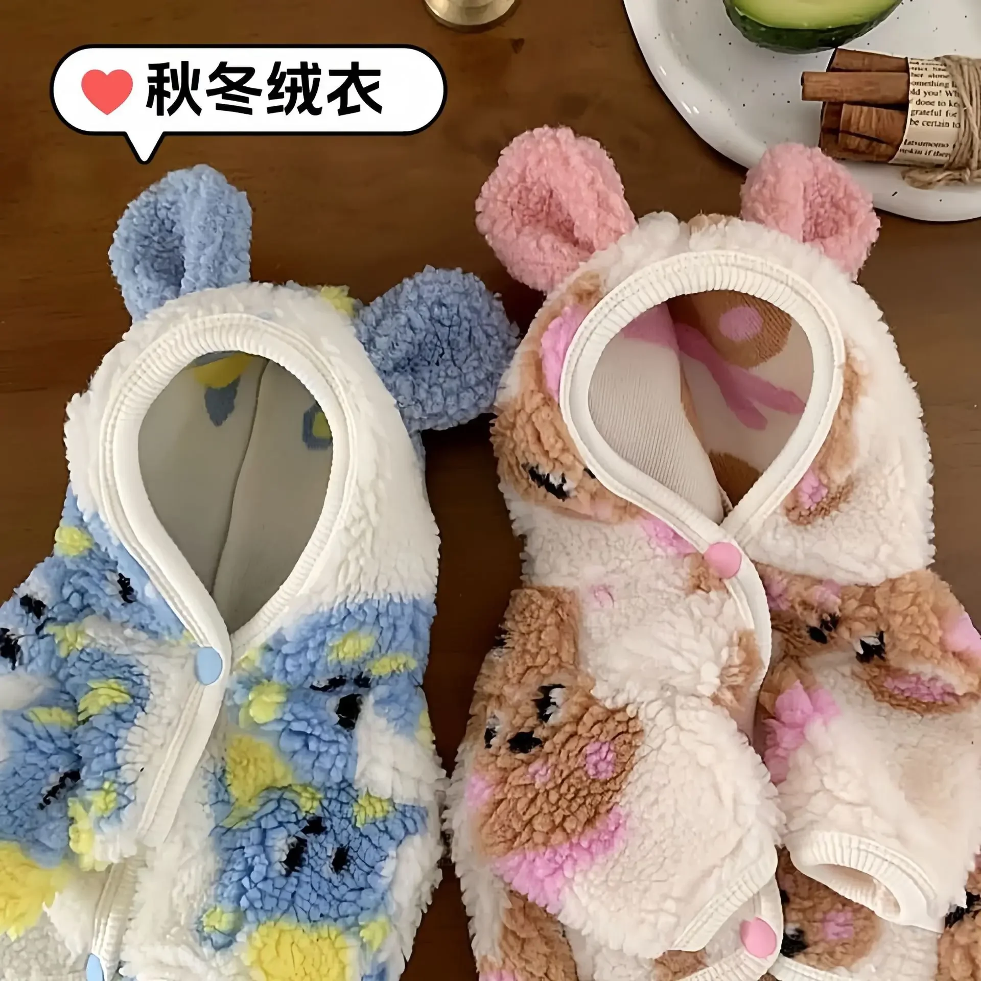 Abrigo de terciopelo con capucha para mascotas, abrigo de terciopelo para perros y corderos, oso de peluche, Yorkshire, Sudadera con capucha para perros pequeños, ropa de otoño e invierno para cachorros