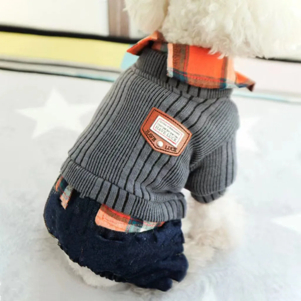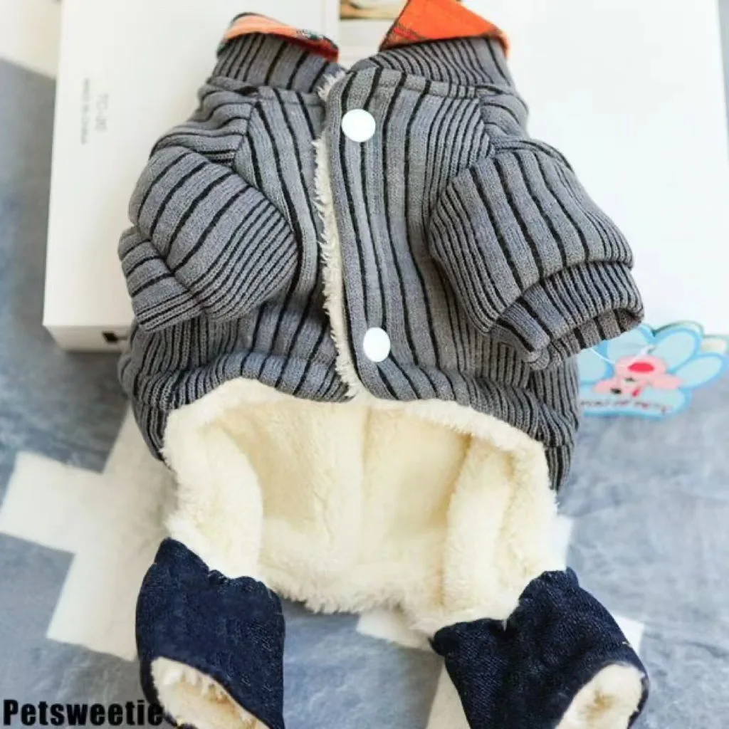 Abrigo de terciopelo de cuatro patas para perro, mono con capucha empalmado con cuello de camisa de otoño/invierno, abrigo grueso de cuatro patas para perro pequeño, nuevo abrigo cálido para perro