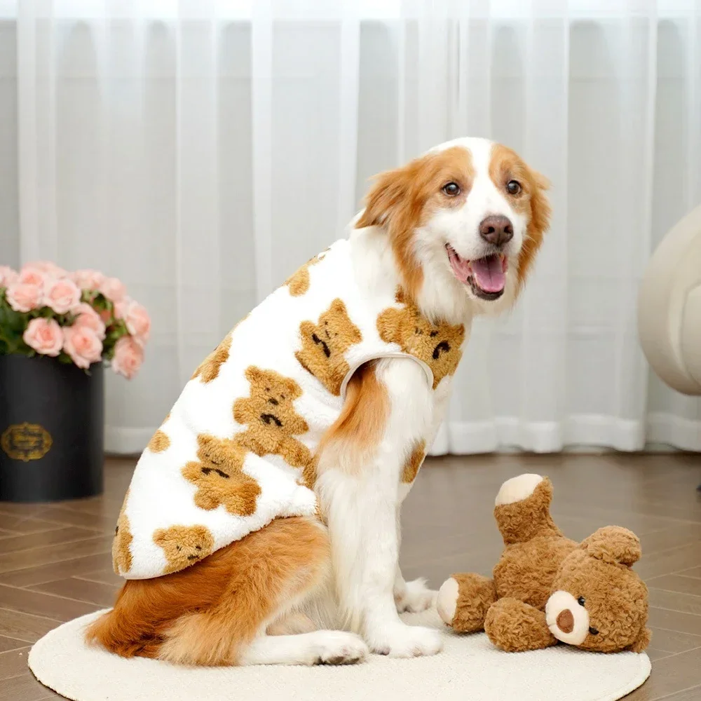 Abrigo térmico de lana para perros, ropa estampada de oso de peluche de invierno para perros medianos y grandes, suéter de lana suave para perros grandes, abrigo, ropa para mascotas