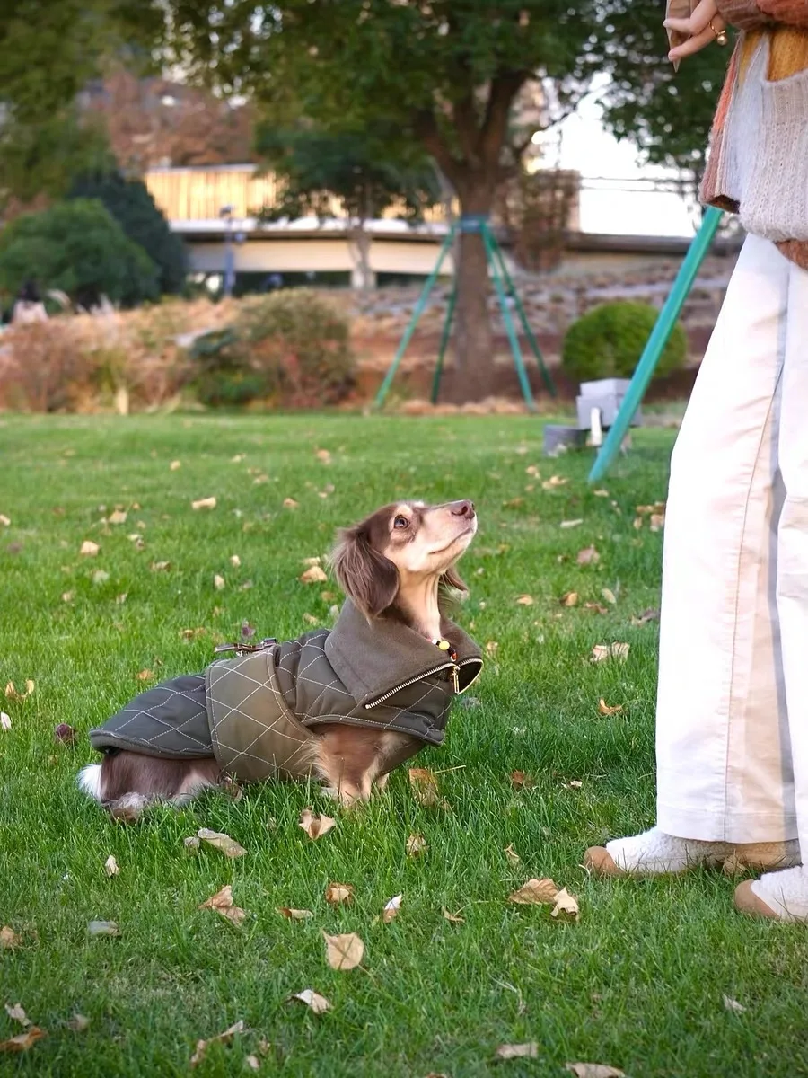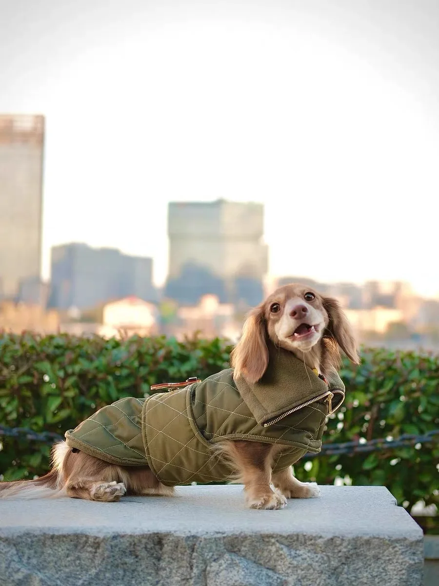 Abrigo verde militar elegante para perros Dachshund abrigo de invierno para perros Wiener chaqueta de capa cálida a prueba de viento para perros pequeños mediados grandes de tejón
