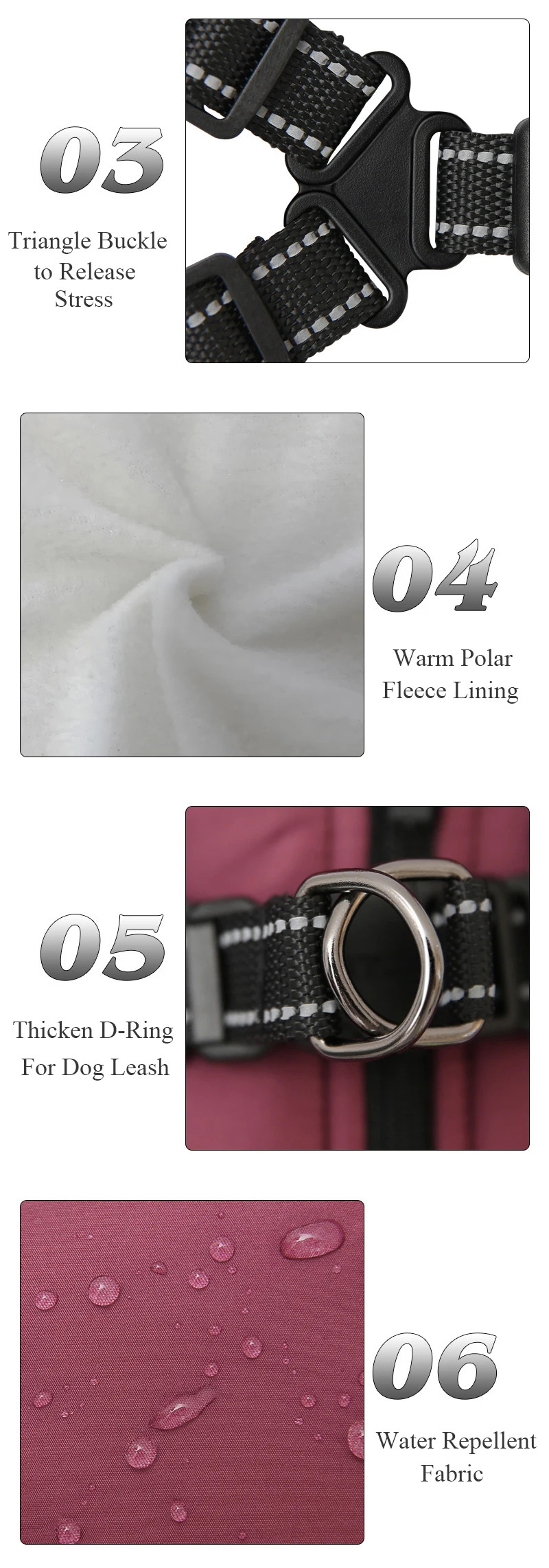 Material:Poliéster repelente al agua + acolchado de algodón + forro polar