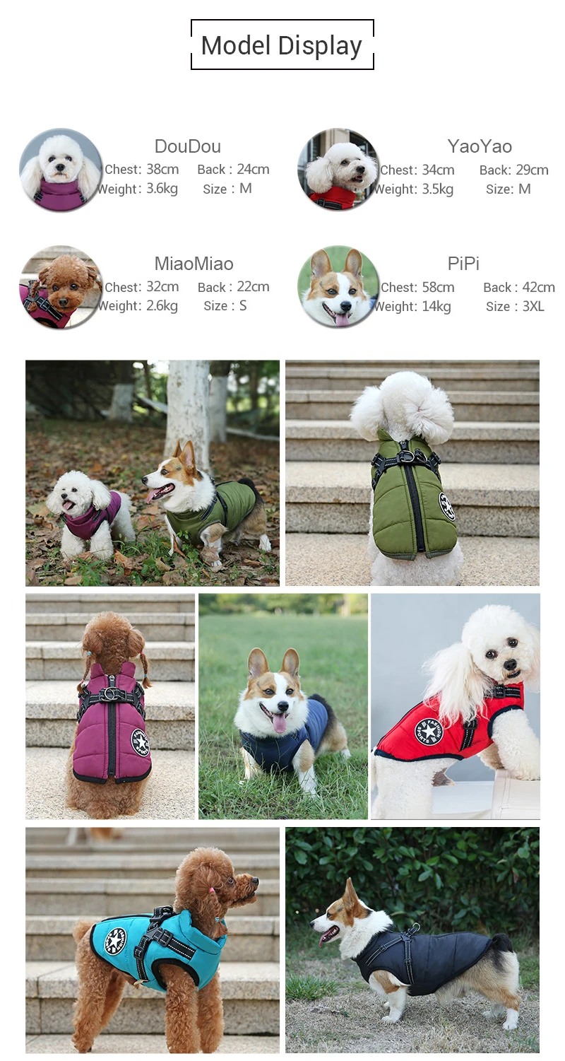 Nota: Esta chaqueta es paraPerros pequeños, medianos y grandes,