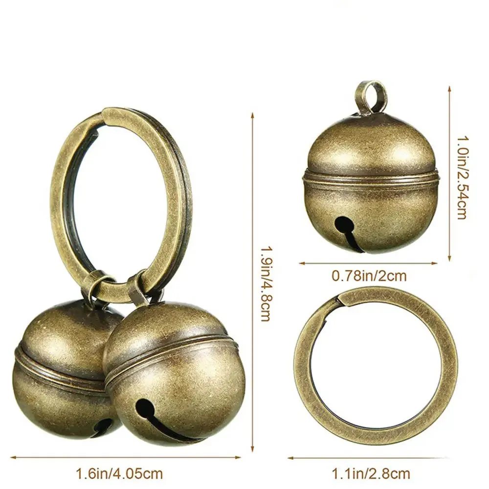 4. Detalles del tamaño: la campana del collar para perros tiene 2 cm/ 0,8 pulgadas de diámetro y 2,6 cm/ 1 pulgada de altura (el llavero no está incluido); La campana pesa solo 5 gramos y no supondrá mucha carga a sus mascotas cuando las usan durante mucho tiempo.