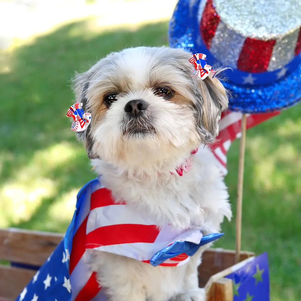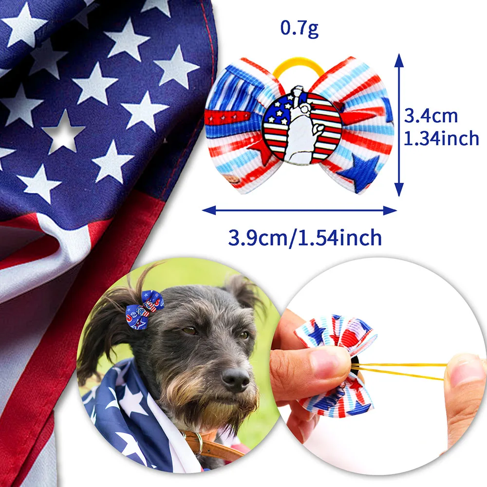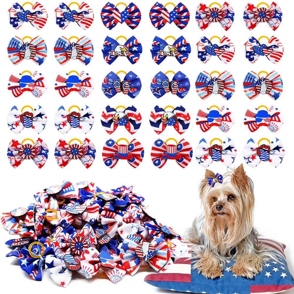 100, accesorios para el cabello para perros, lazos para el cabello de perros para el Día DE LA Independencia, suministros para mascotas, lazos para perros pequeños, bandas de goma, lazos para perros
