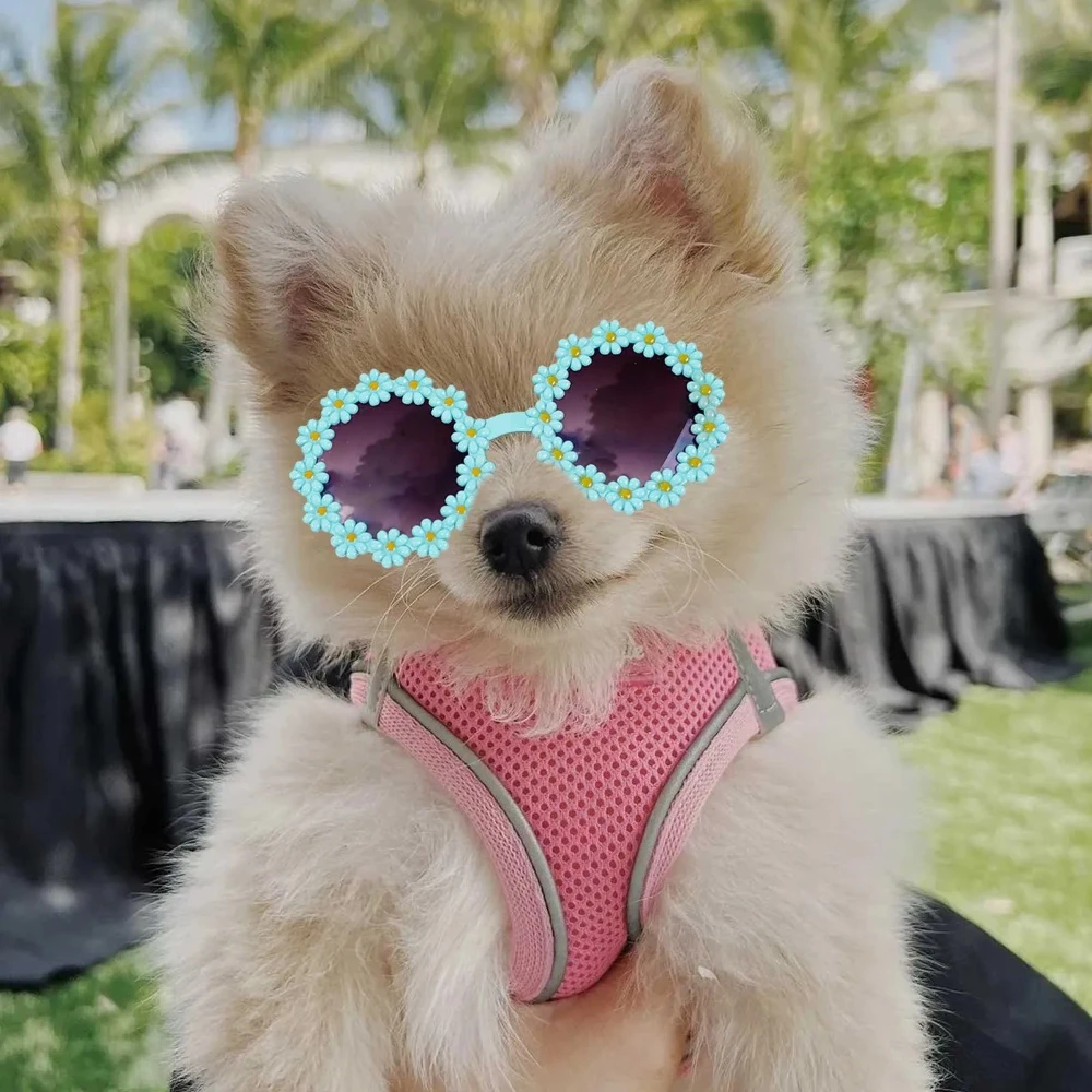 Accesorios para mascotas, gafas de sol de flores, gafas circulares para juegos de rol, accesorios para fotos, gafas para gatos y correa para perros pequeños y Paracord