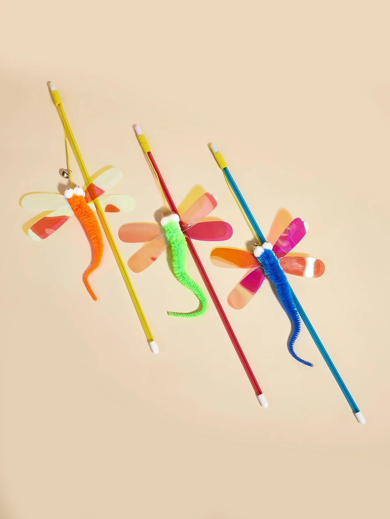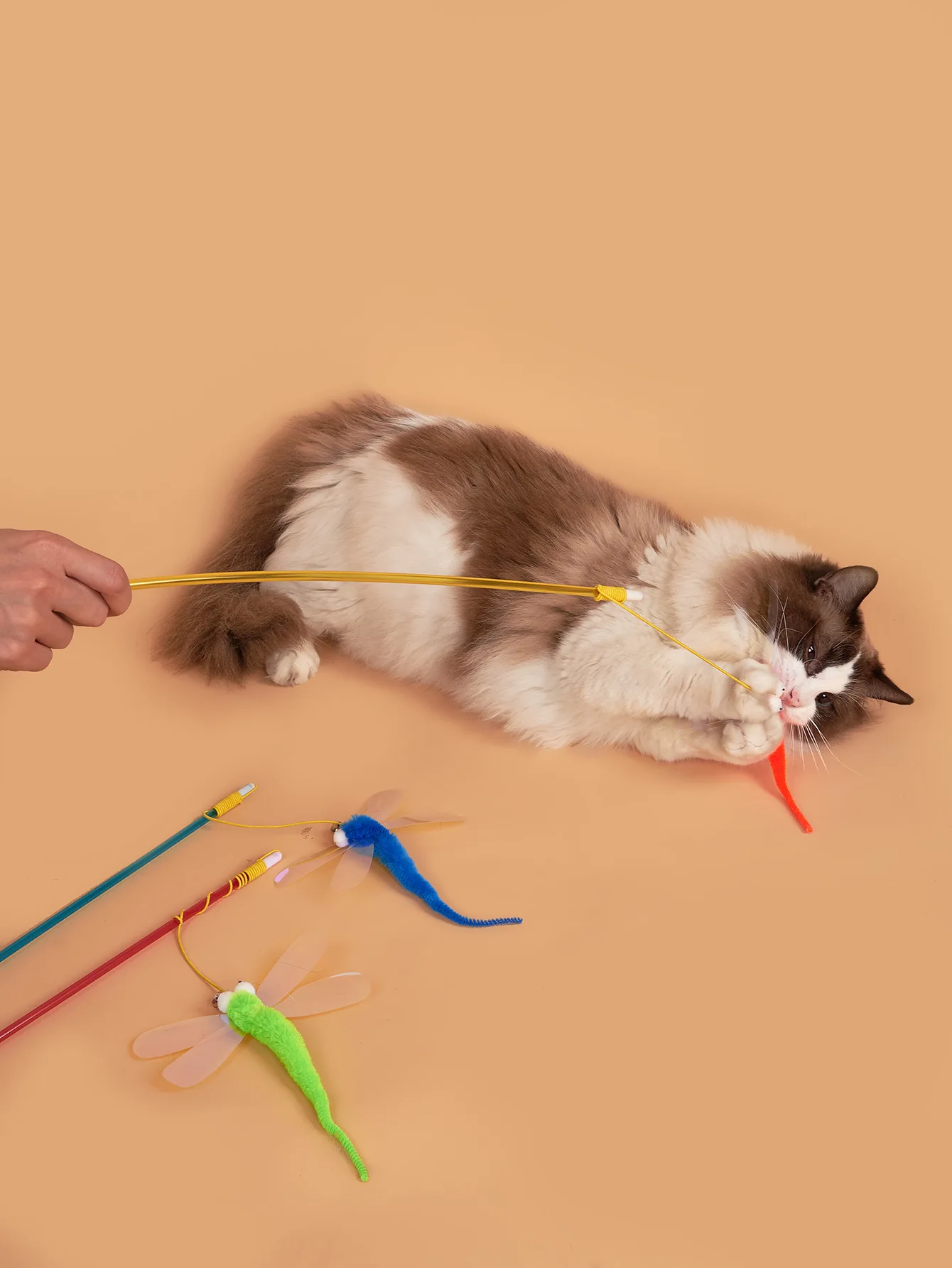 Accesorios para mascotas, palo de cosquillas para gatos, lentejuelas, ojos grandes, Libélula, juguetes interactivos, suministros para gatos, juguete interactivo para gatos