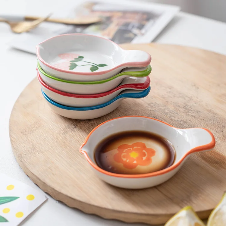 Accesorios para perros de moda, plato pequeño japonés, plato de cerámica para mascotas de dibujos animados, Mini mango creativo para el hogar, plato pequeño para gato y perro