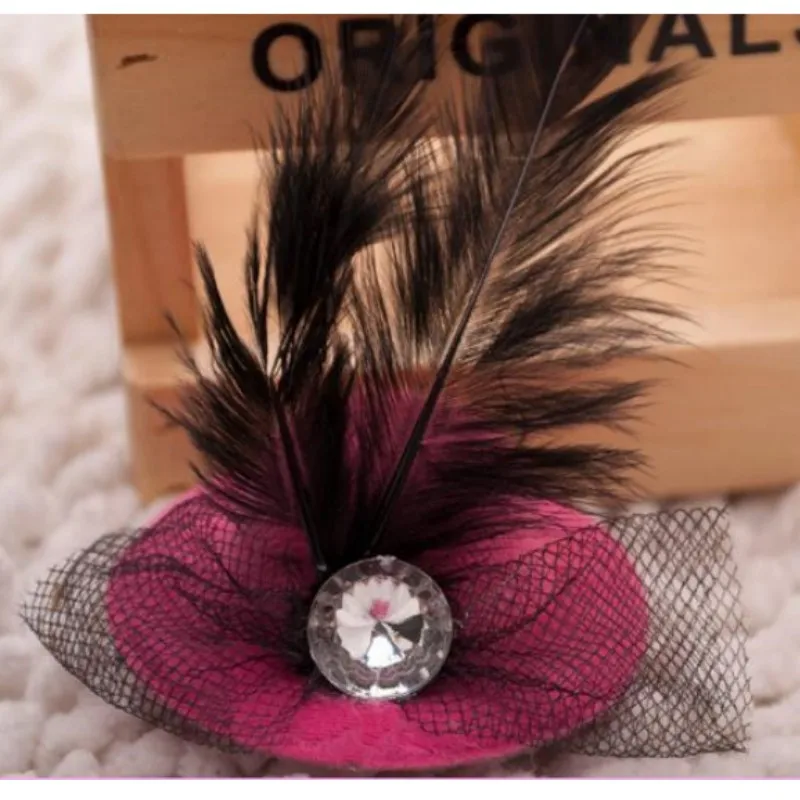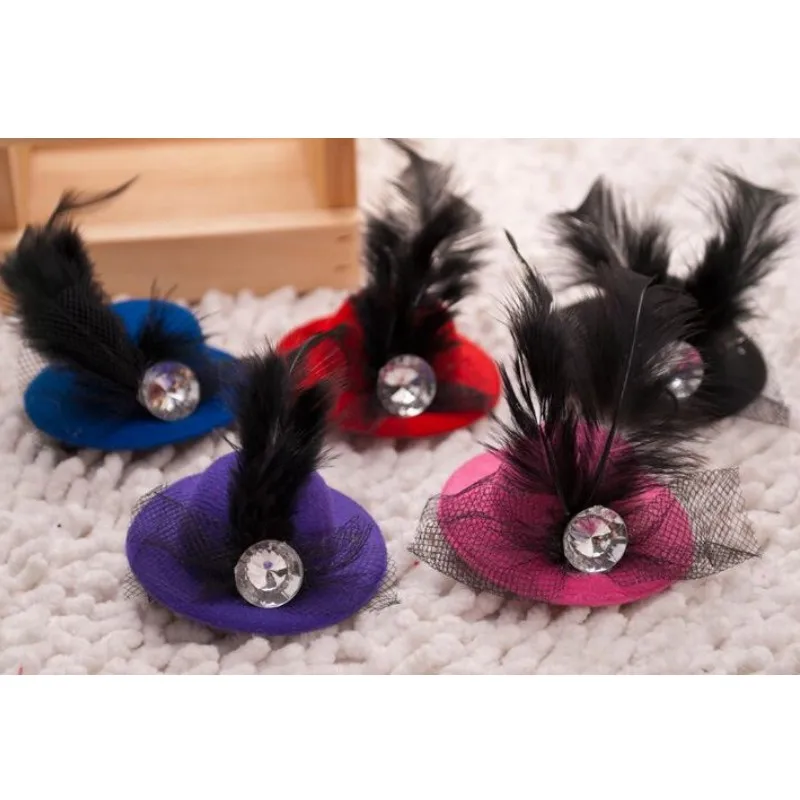 Accesorios para perros, sombrero estilo inglés, pinza para el pelo con plumas, sombrero de diamante, horquilla, accesorios para el cabello para perros, suministros para mascotas de 5,5 cm