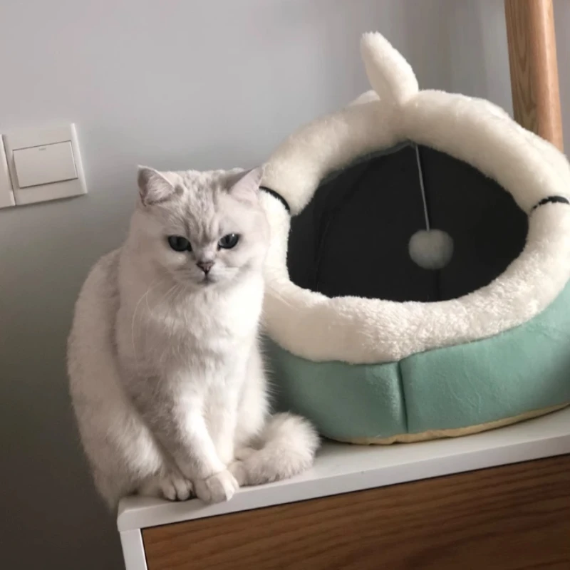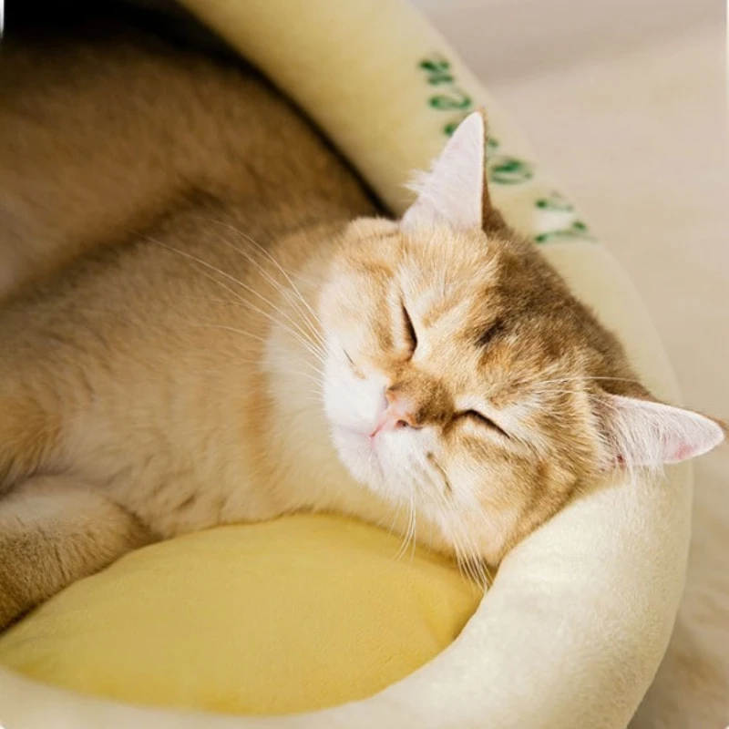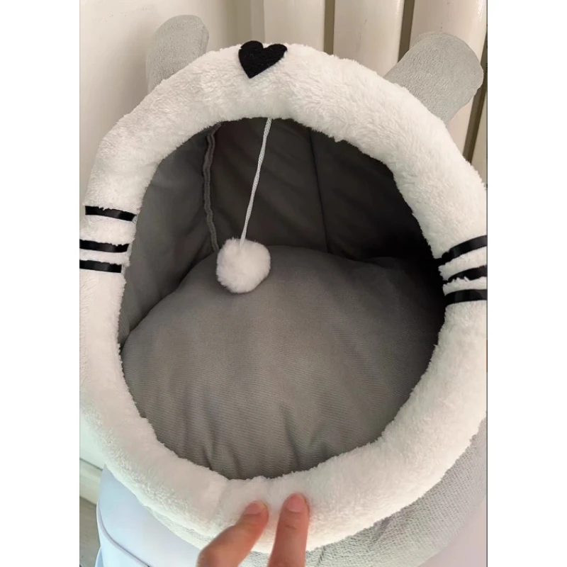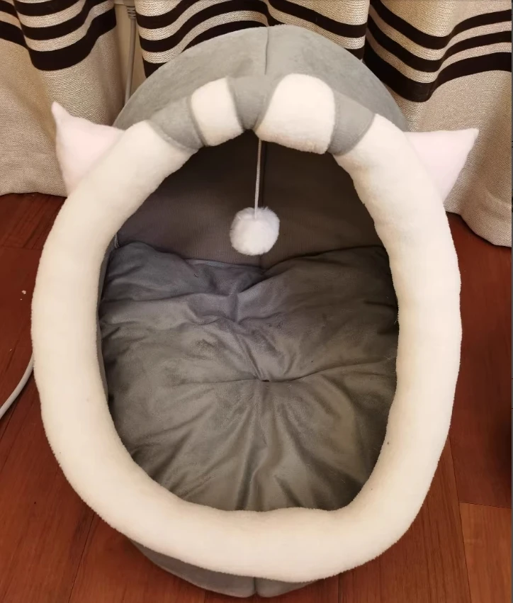 Deje que su amigo peludo disfrute de la máxima comodidad con nuestra adorable y funcional cama para gatos.Diseñada para imitar un escondite natural, esta cueva semicerrada brinda una sensación de seguridad mientras mantiene a su mascota abrigada y acogedora.¡El lindo diseño de oreja de animal y el divertido pompón añaden un toque de alegría a la decoración de tu hogar!