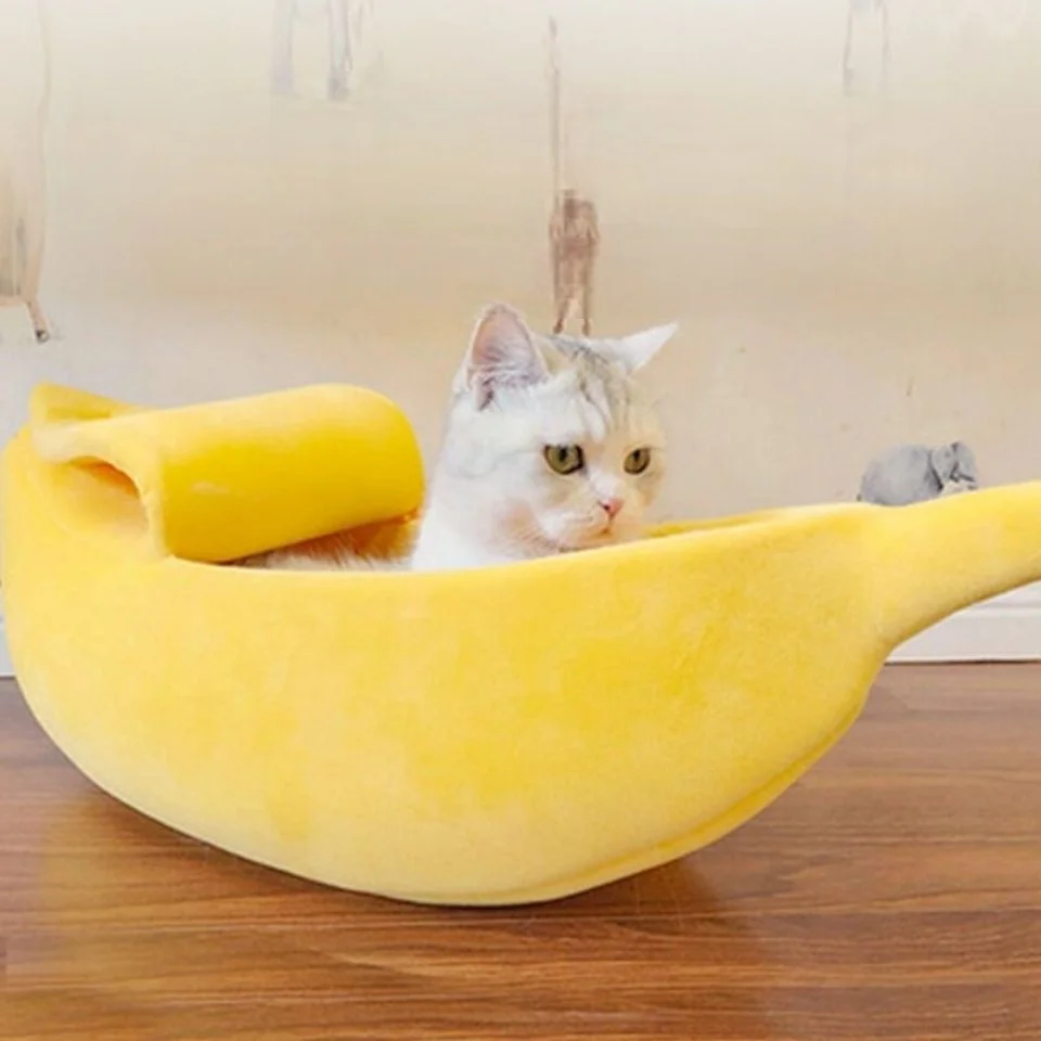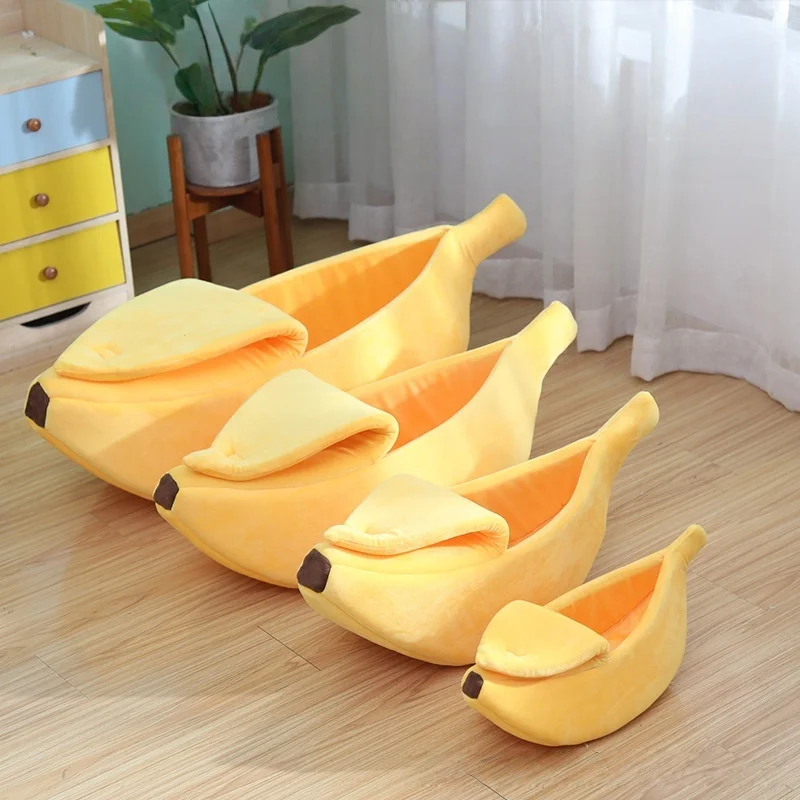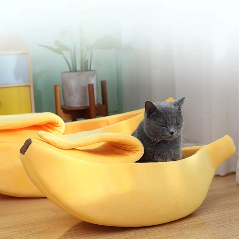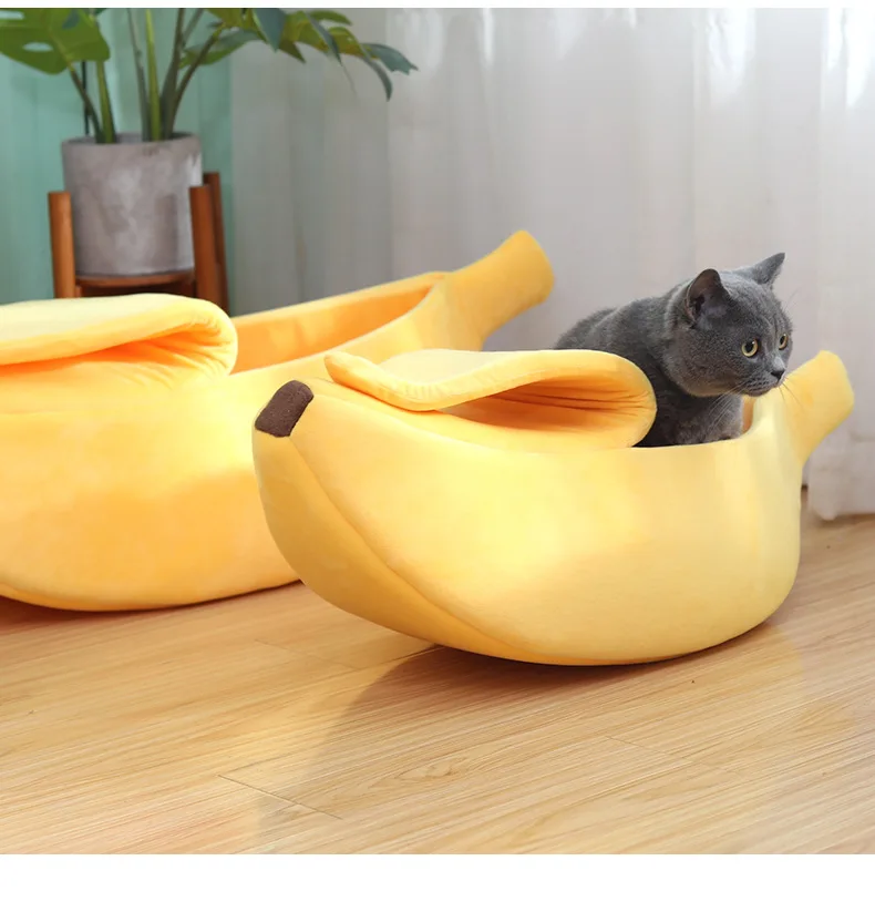 Acogedora cama tipo plátano: casa para mascotas semicerrada cálida de invierno para gatos, perros y hámsteres - Terciopelo de felpa con aislamiento térmico
