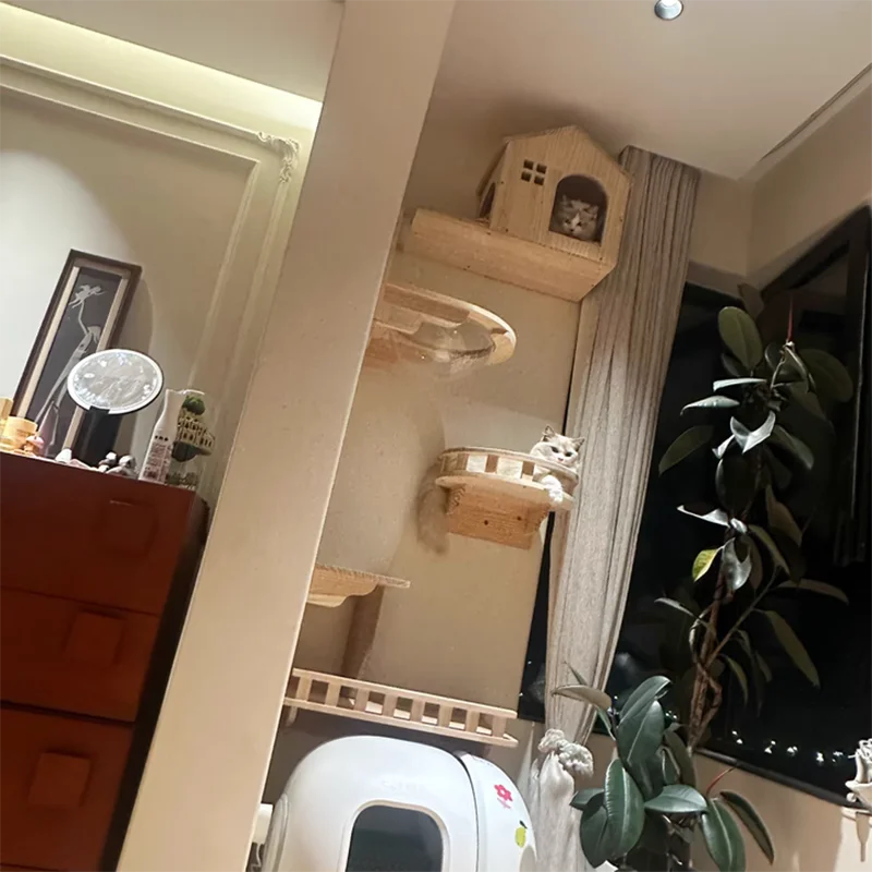 Actividad montada en la pared, rascador de Sisal de madera para gatos, muebles escaladores, puente para gatos, escalones de cuerda, escalera para gatitos, poste para pared