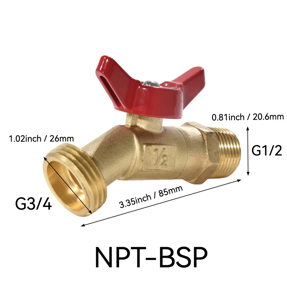 Esto Adaptador de grifo de jardín de latónconvierte un Rosca macho BSP G1/2"a un Rosca hembra NPT de 3/4"., lo que lo hace ideal para conectar mangueras, grifos y sistemas de riego.Construido con latón de alta calidad, ofrece excelente resistencia a la corrosión, durabilidad y rendimiento a prueba de fugas., adecuado para uso en exteriores, jardines y hogares.