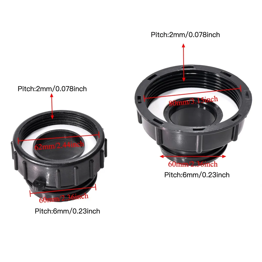 Adaptador de 62 mm a 80 mm– Compatible con tanques de mano IBC y barriles de agua de lluvia.