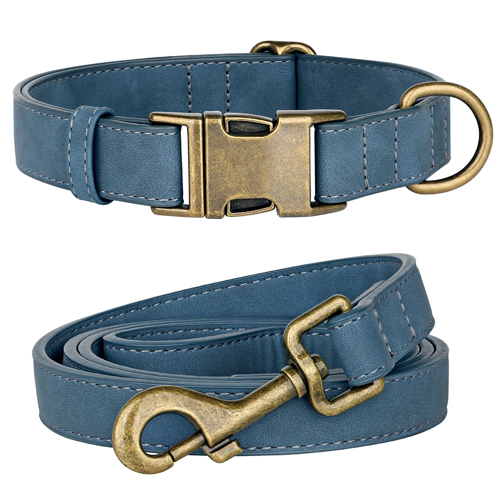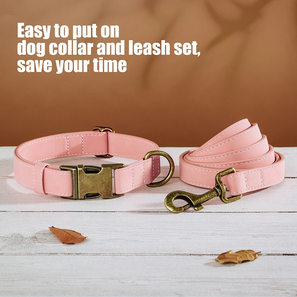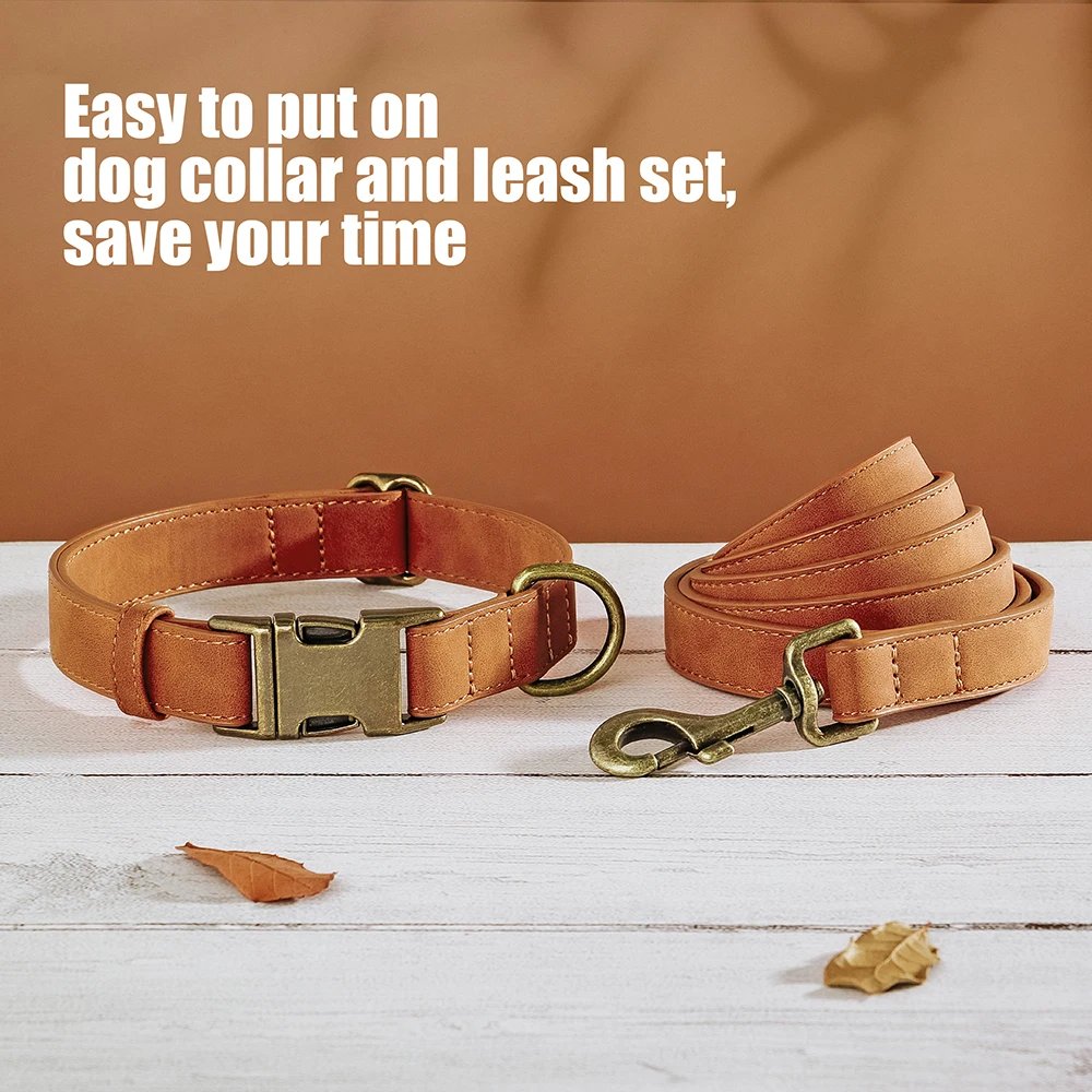 Collar y correa ajustable para perro, collares de cuero PU para perro, collar de cuerda de plomo duradero para mascotas, suave para perros pequeños, medianos y grandes, BulldogMaterial: cuero PU