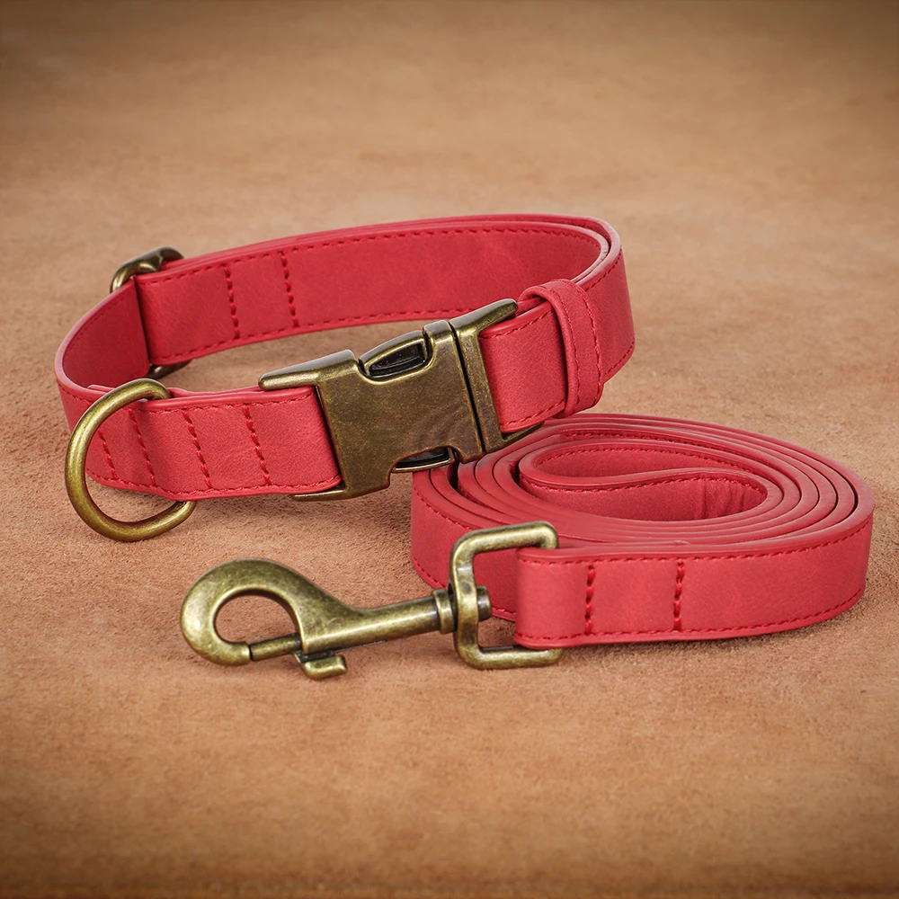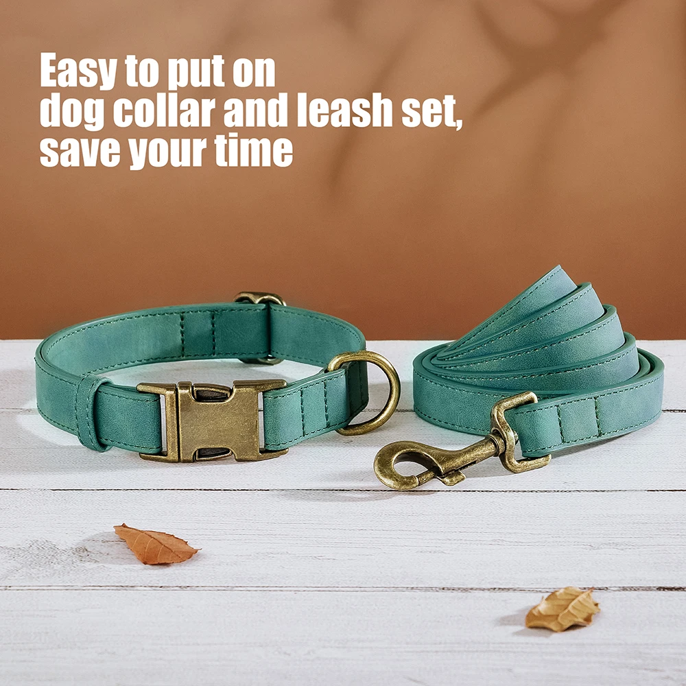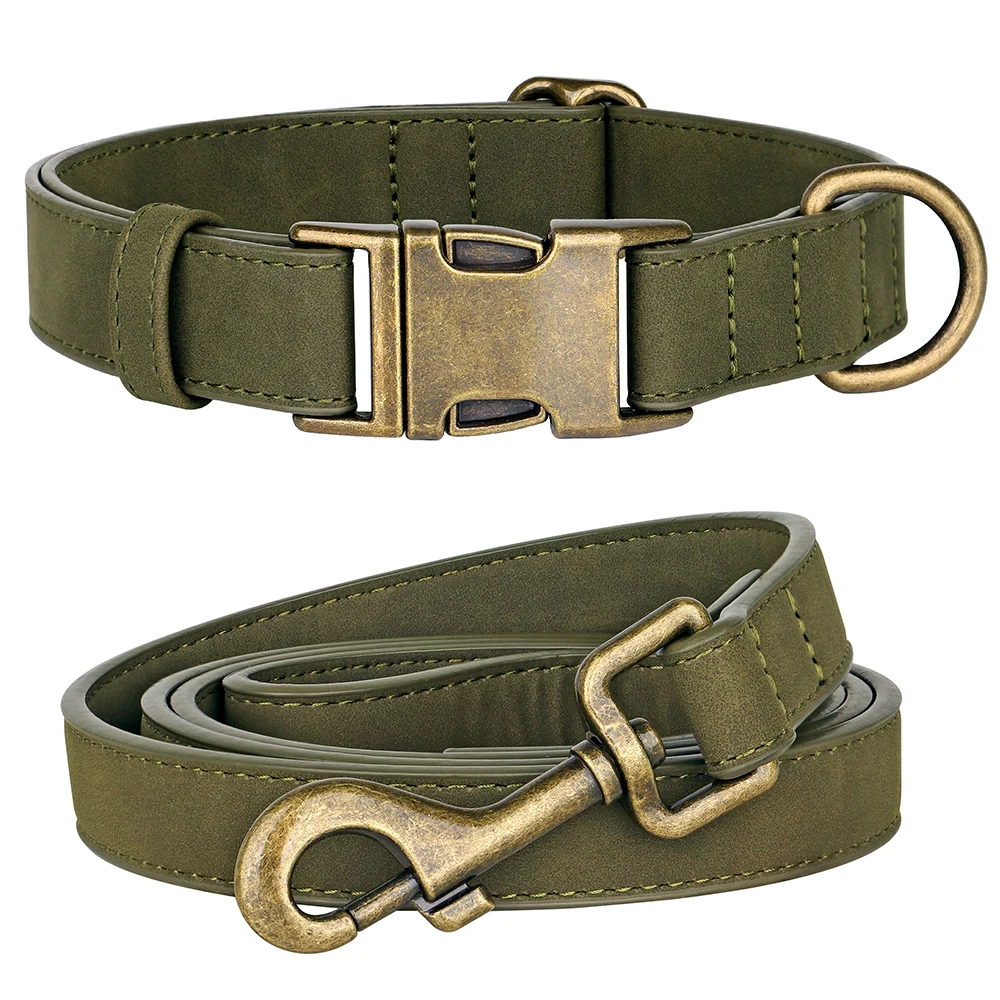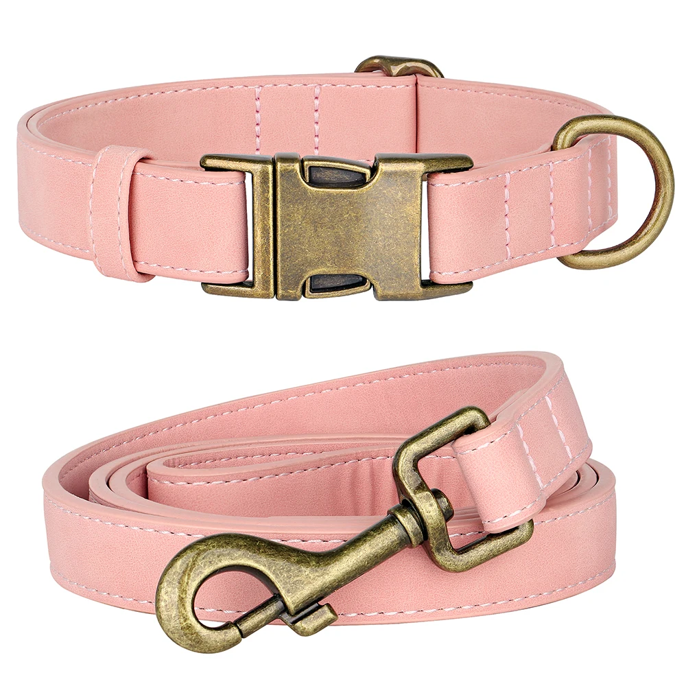 Collar y correa ajustable para perro, collares de cuero PU para perro, collar de cuerda de plomo duradero para mascotas, suave para perros pequeños, medianos y grandes, BulldogMaterial: cuero PU