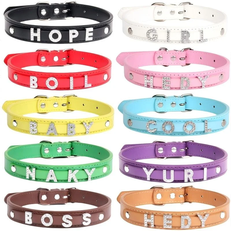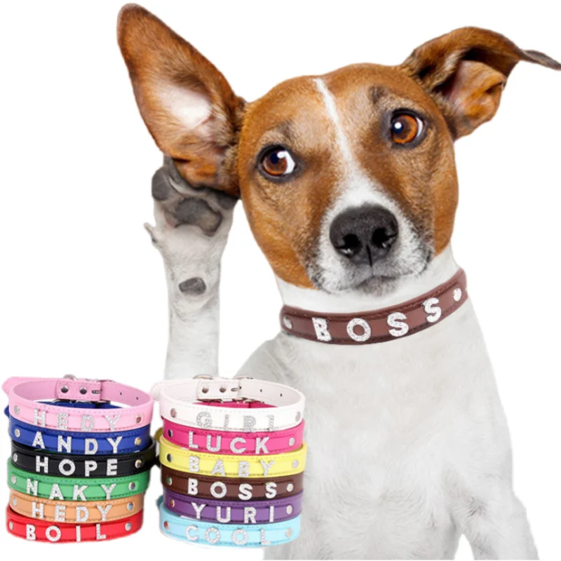 Collar ajustable para perro, nombre de identificación personalizado, suministros para mascotas, collar personalizado para cachorro, Collar de gato de cuero Pu sólido antipérdida, collares para perros