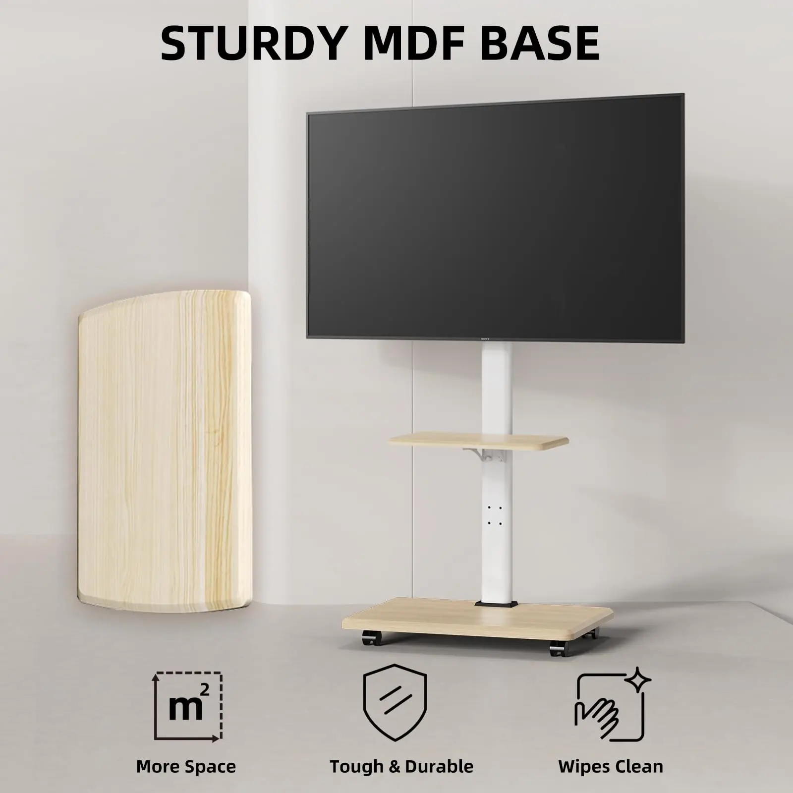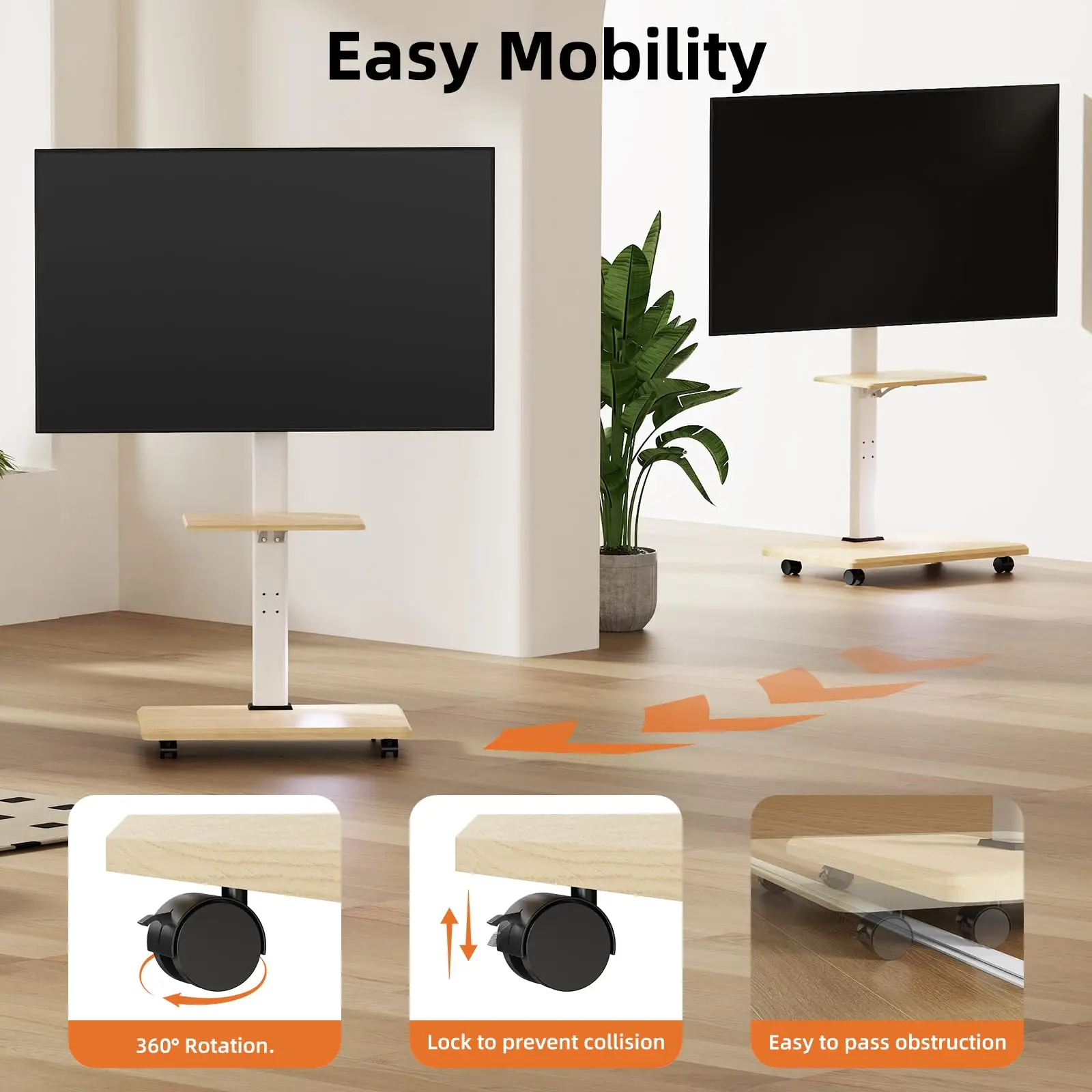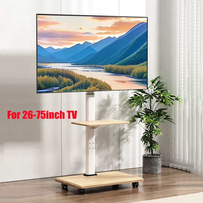 Soporte de TV móvil ajustable para televisores de 26 a 75 pulgadas: giratorio y ajuste de altura con bandeja opcional, el carrito rodante para piso tiene capacidad para 99 libras con ruedas