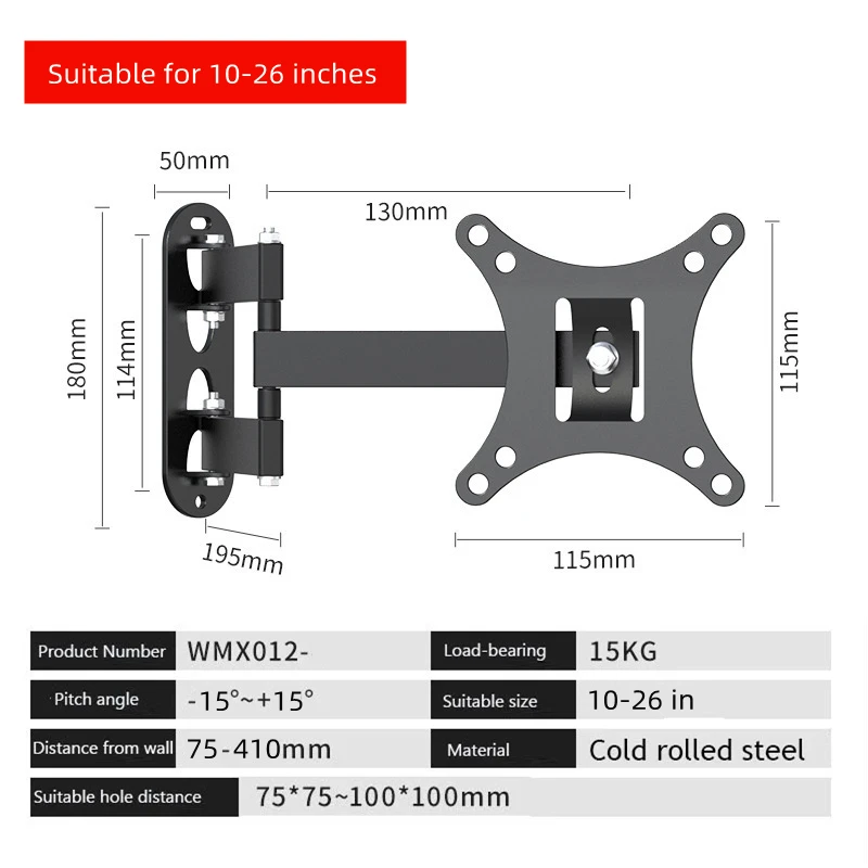 Distancia entre agujeros: 75*75~100*100mm