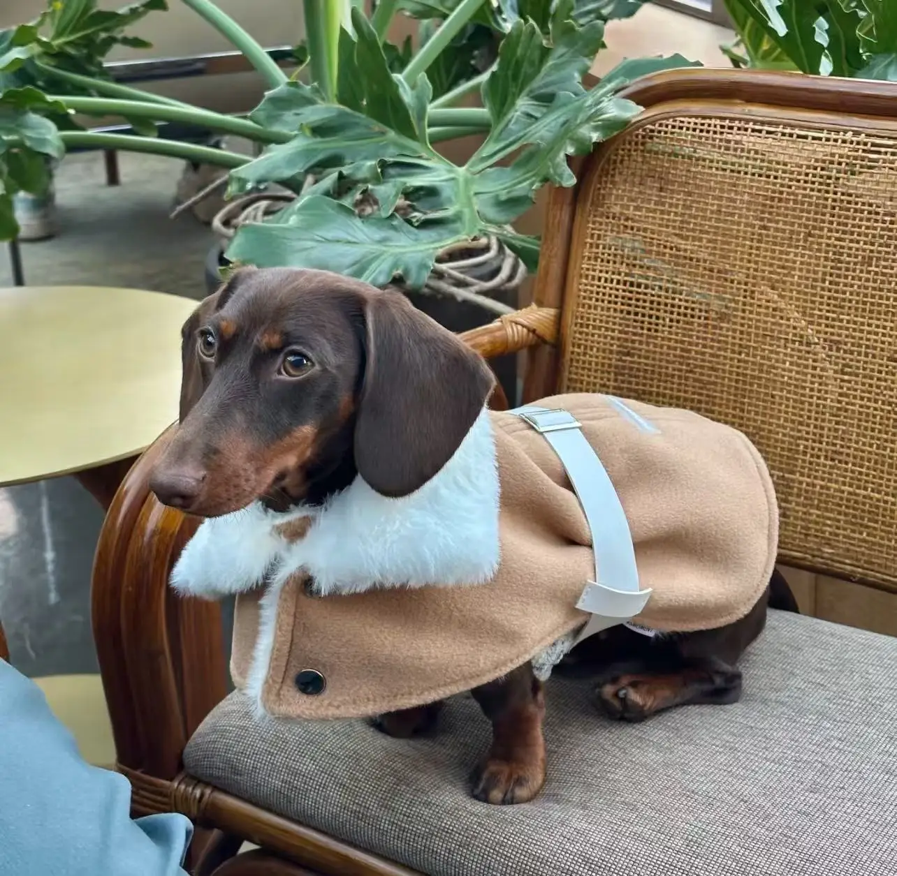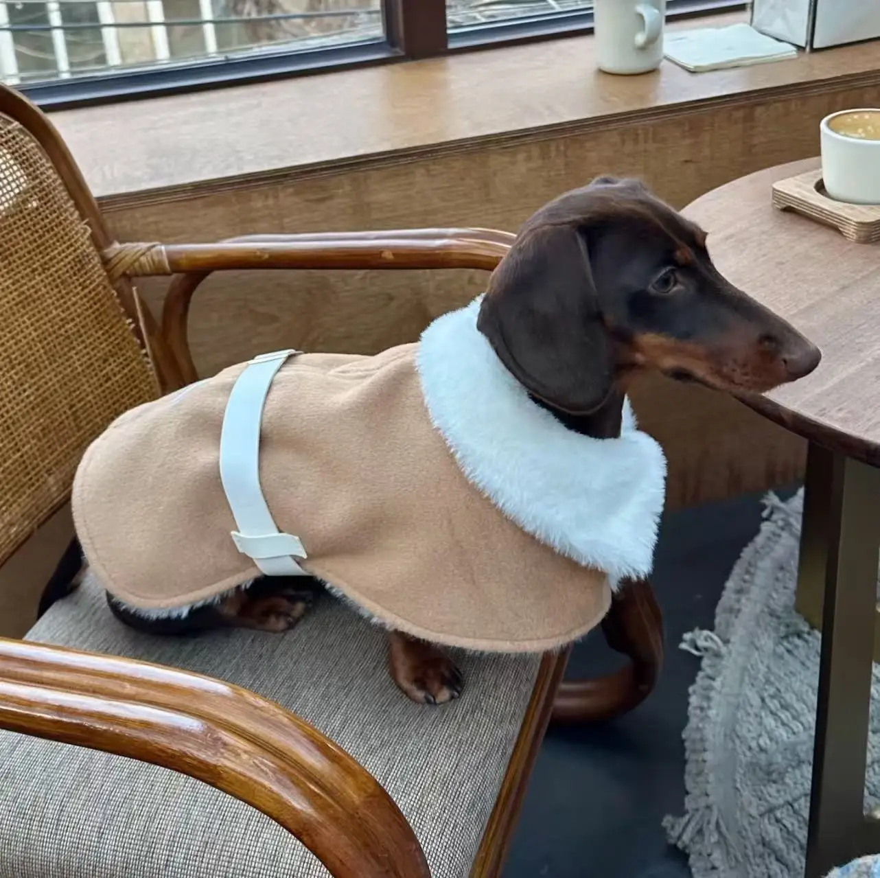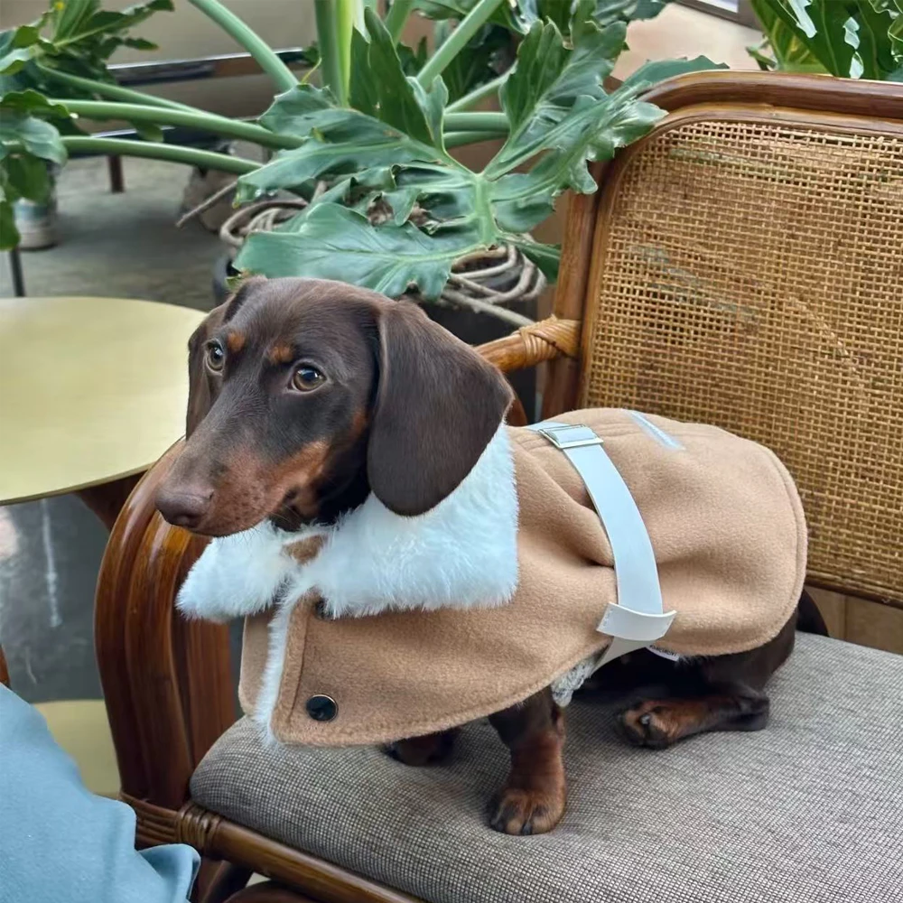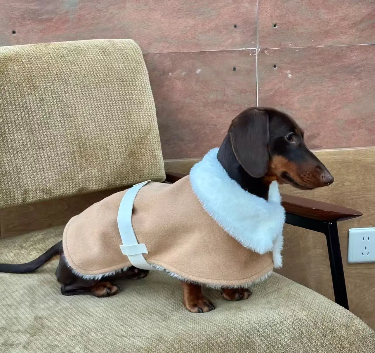 Capa con cintura ajustable para perros Wiener, abrigo grueso y cálido para perros Dachshund, abrigo con cuello de piel para perros pequeños de tejón