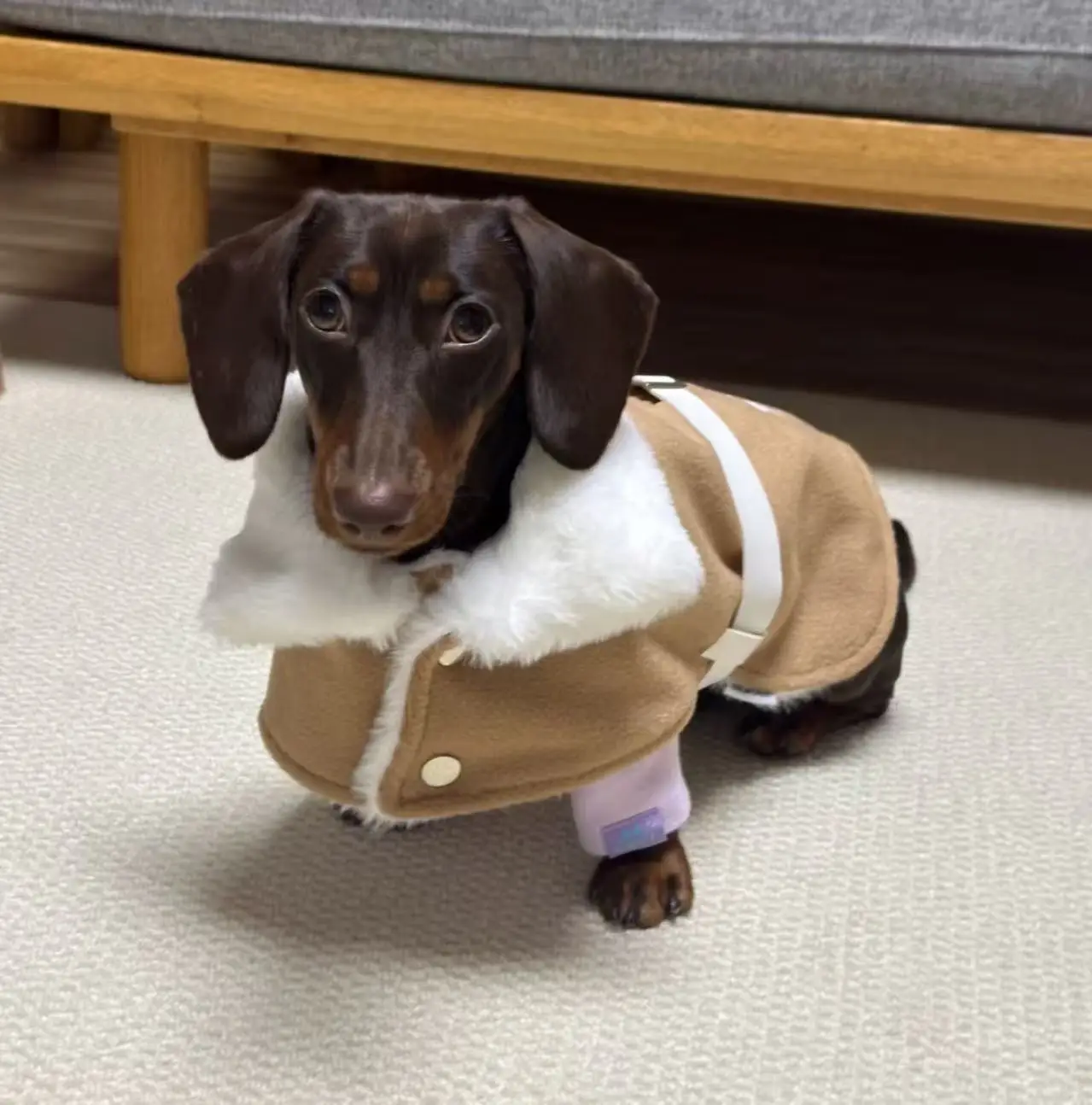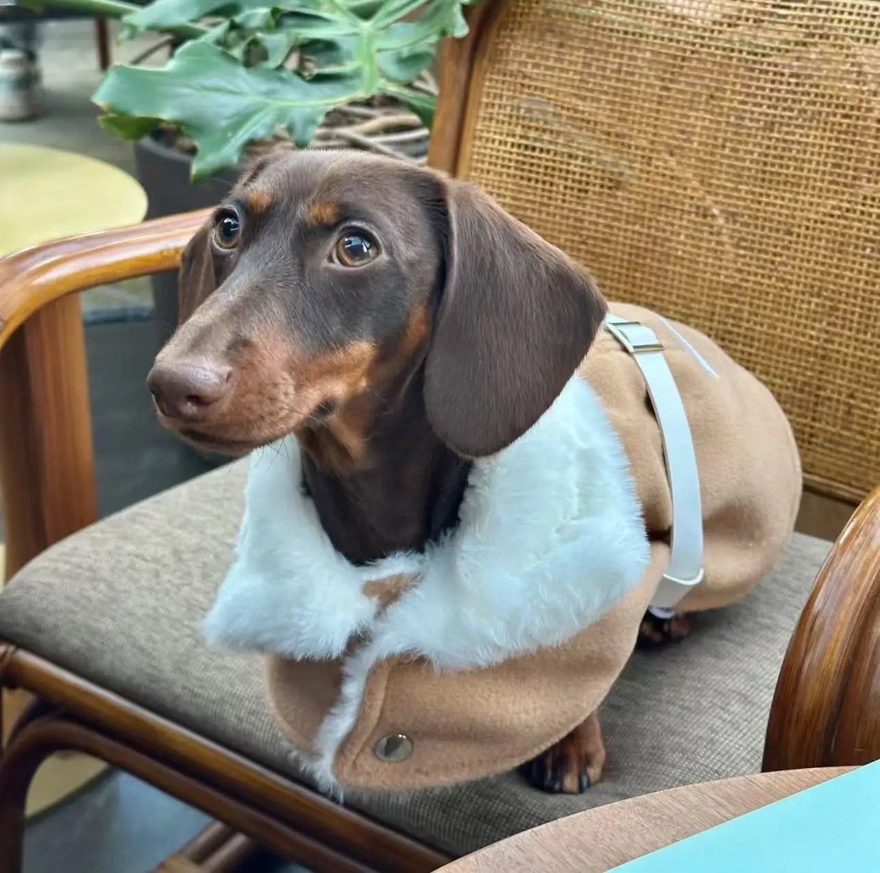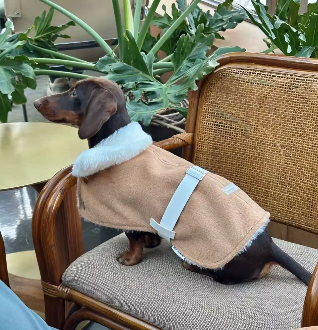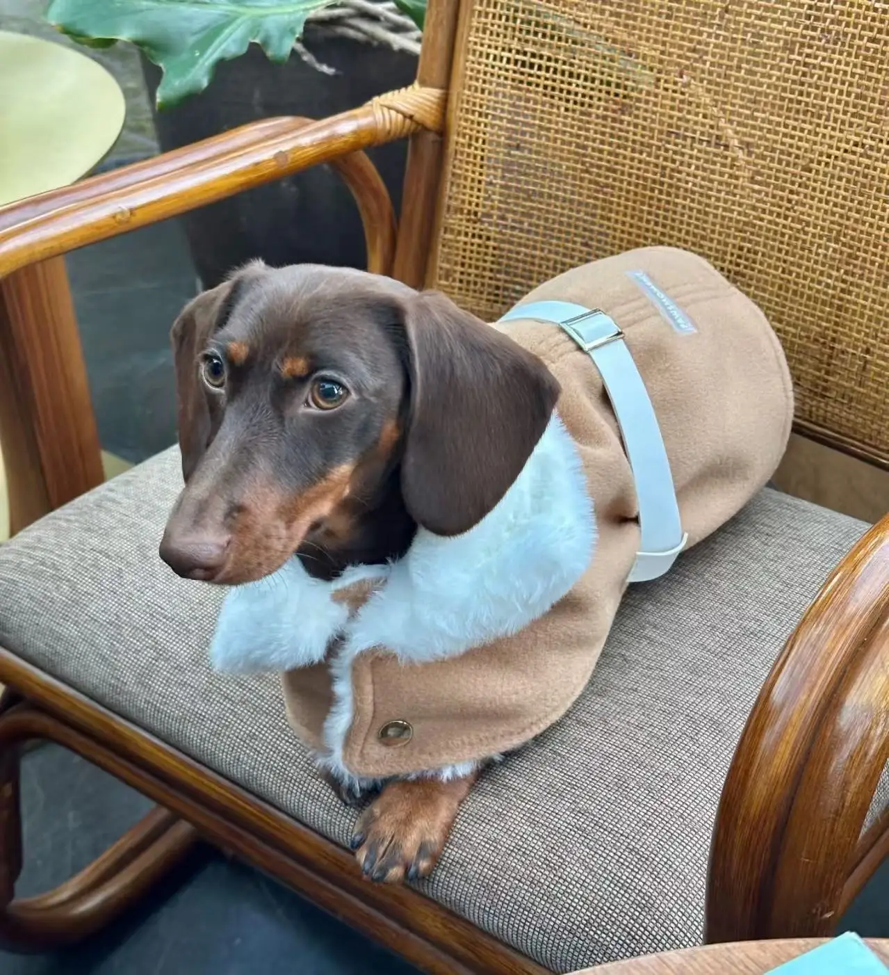 Capa con cintura ajustable para perros Wiener, abrigo grueso y cálido para perros Dachshund, abrigo con cuello de piel para perros pequeños de tejón