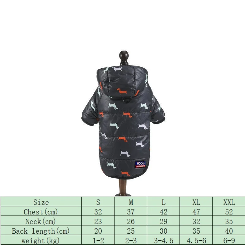 Adorable Chaqueta de algodón con estampado de perro, forro polar grueso de invierno, gorro cálido antiviento incluido, ropa para perros de dos patas para mascotas