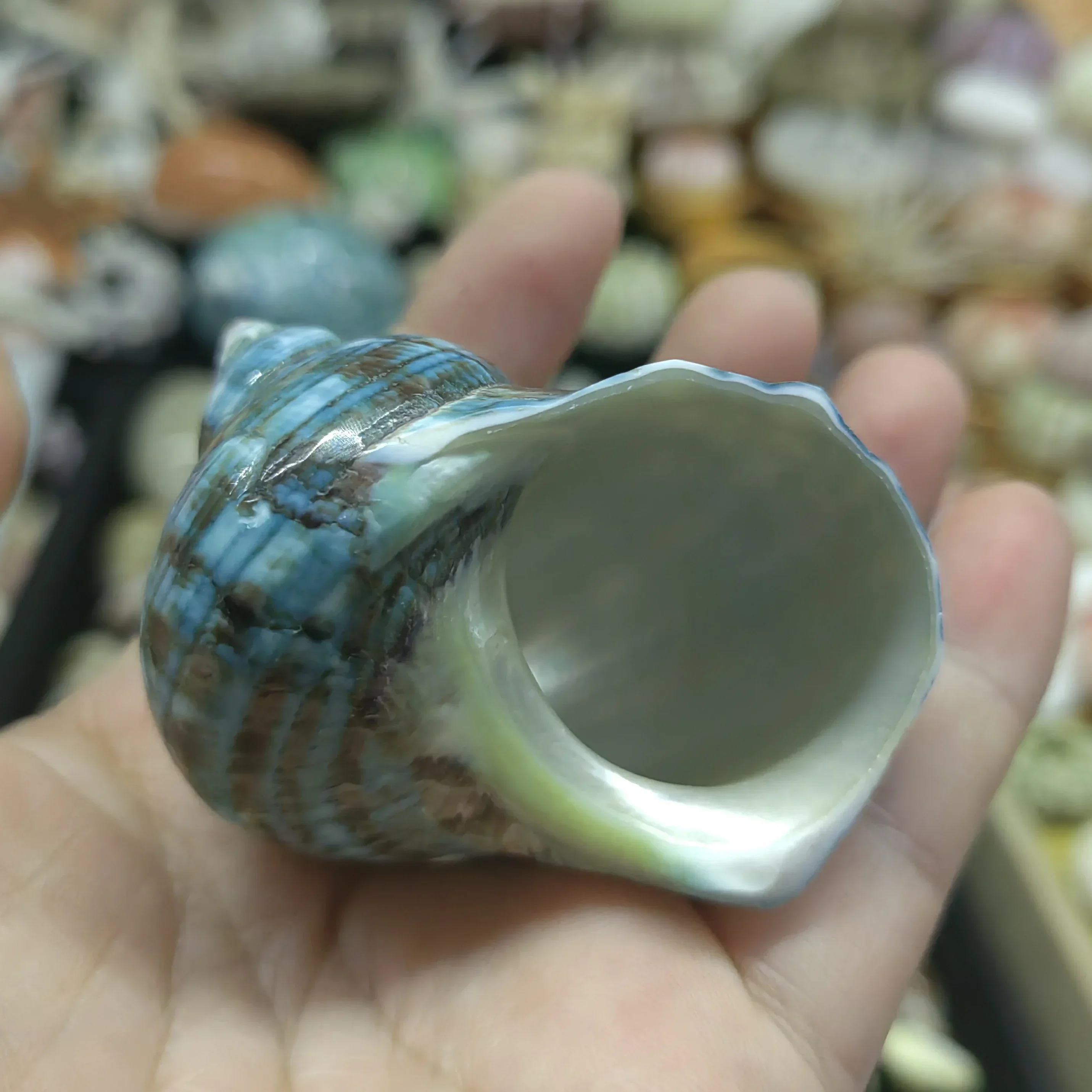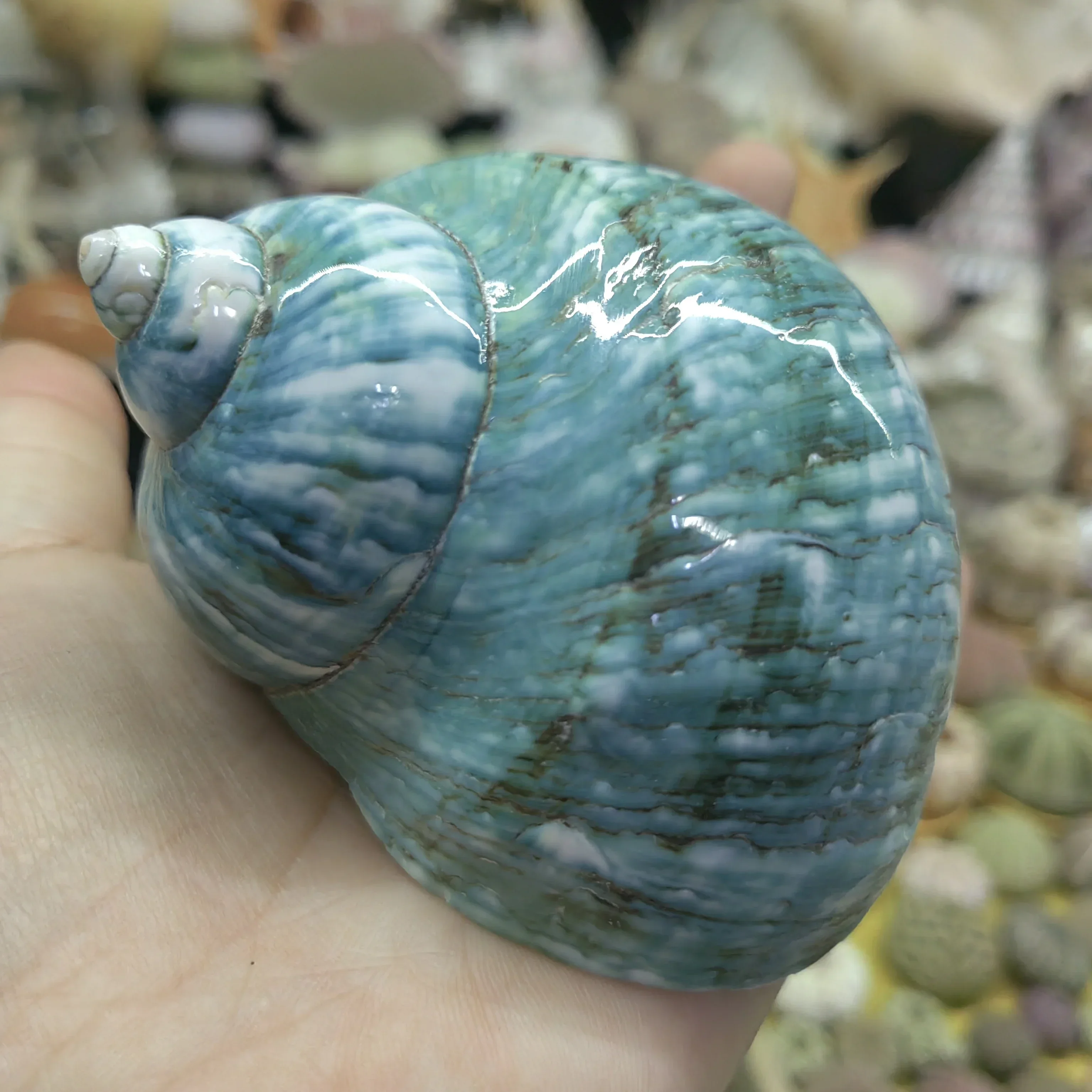 Adorno de acuario de concha Turbo con perla verde de Jade grande, decoración de pecera náutica, decoración de paisaje subacuático playero para el hogar