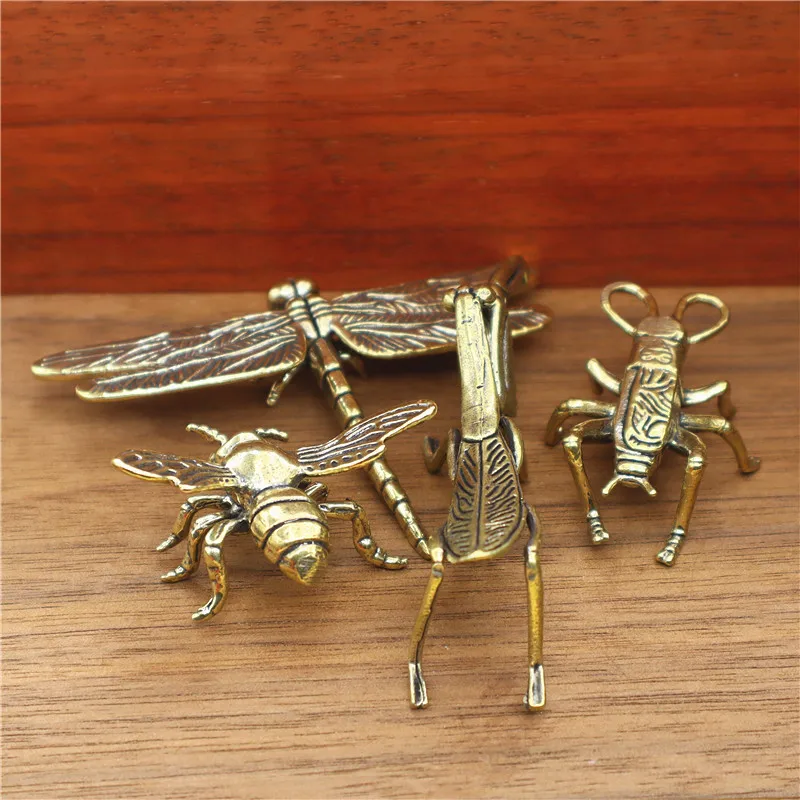 Adorno de cobre antiguo, Mantis de latón, libélula, abeja, estatuillas de Cricket, colección de insectos en miniatura, estatuas, regalos Feng Shui