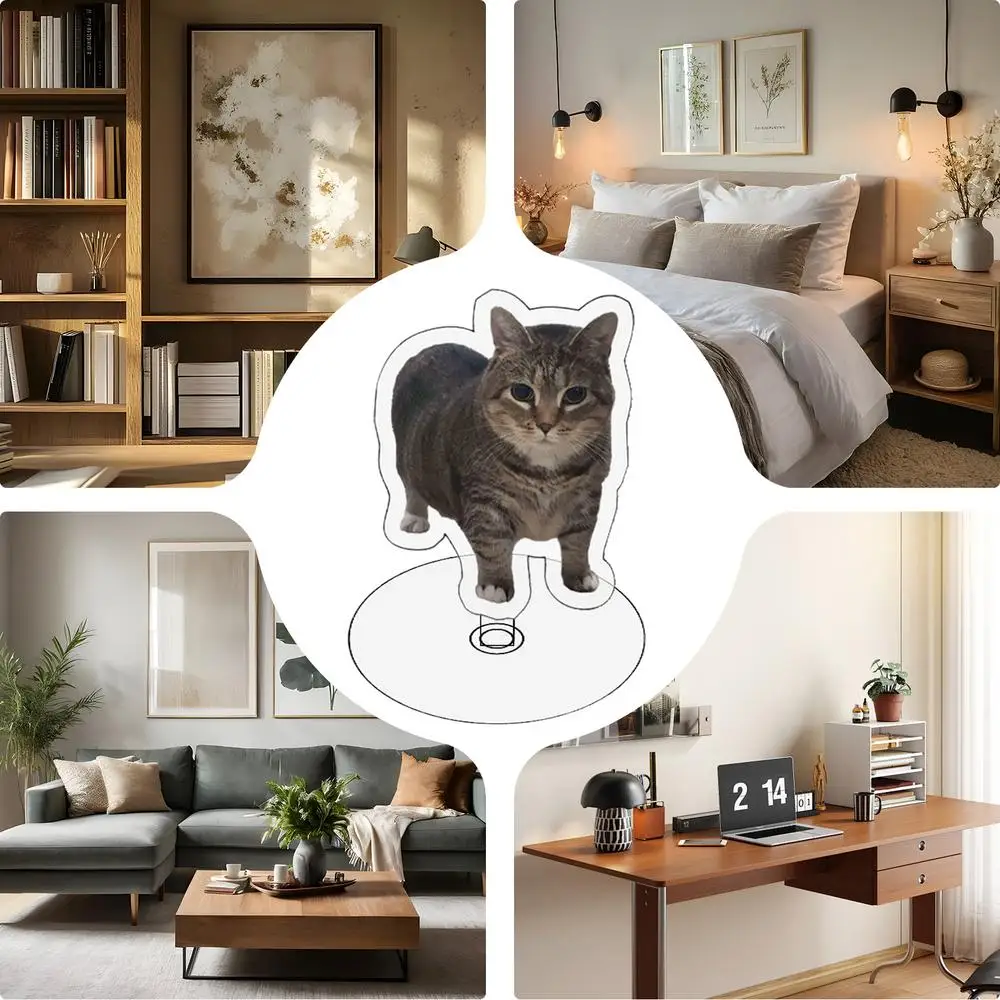 3.Ampliamente aplicable: diseñado para una colocación flexible en salas de estar, dormitorios y estudios de alto tráfico, este adorno acrílico para gatos agrega elegancia divertida a cualquier superficie plana.