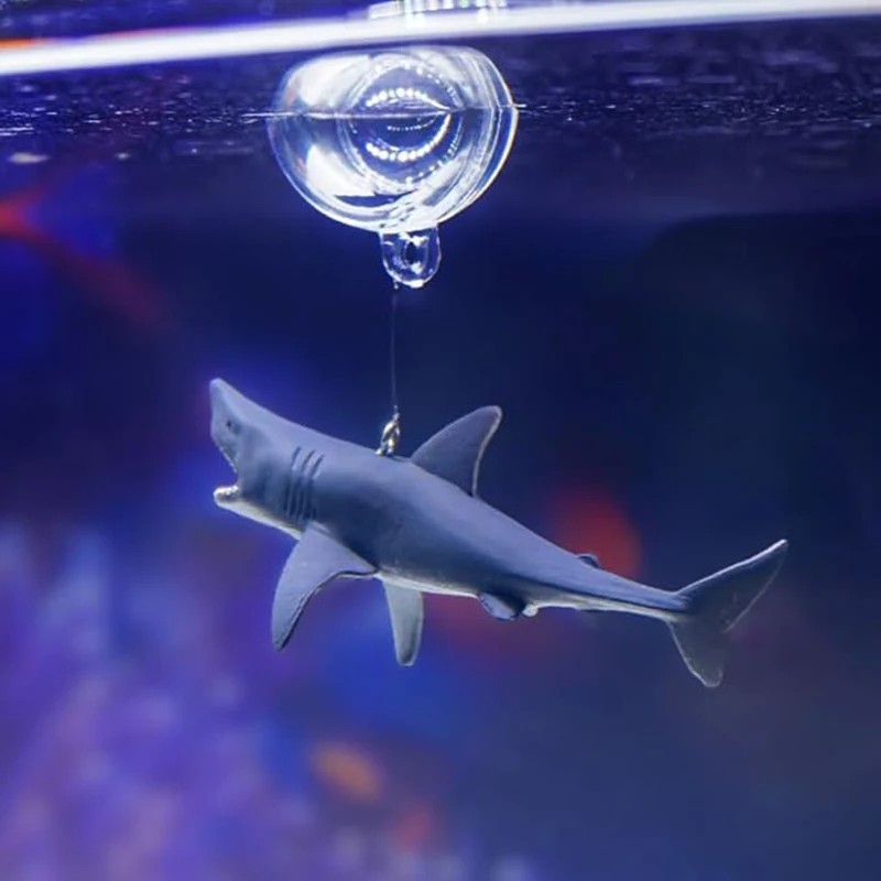 DISEÑO REALISTA:El adorno de tiburón flotante realista agrega una atmósfera subacuática cautivadora a la decoración de su acuario o pecera.