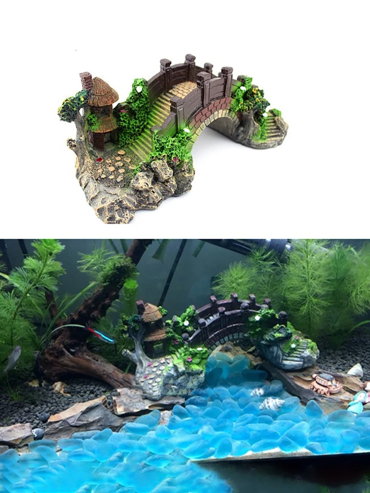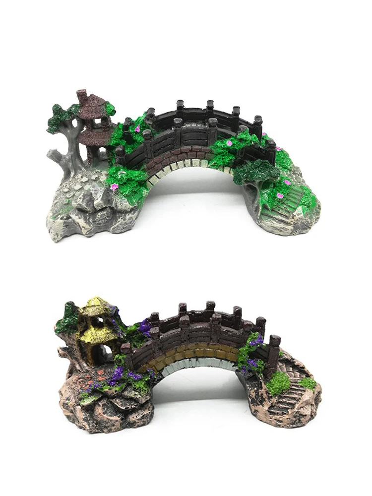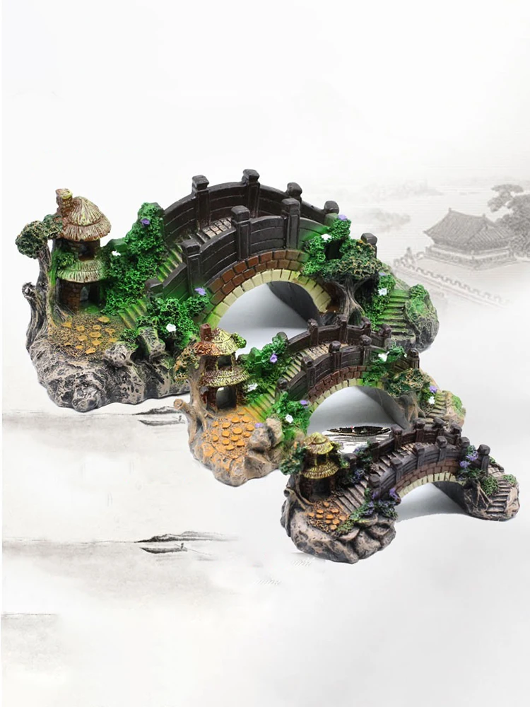 Adornos de resina de puente Artificial para acuario S/M/L, decoración de tanque de peces con borde de estilo chino, accesorio de paisajismo para fondo