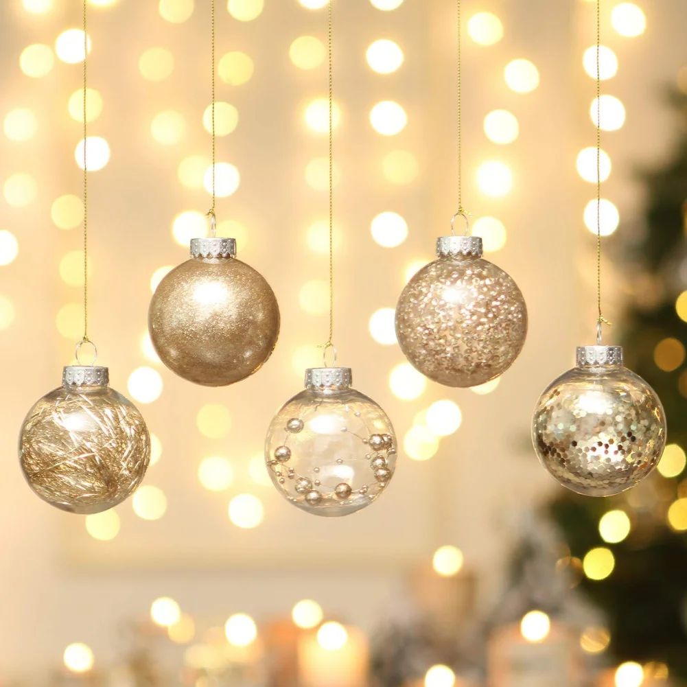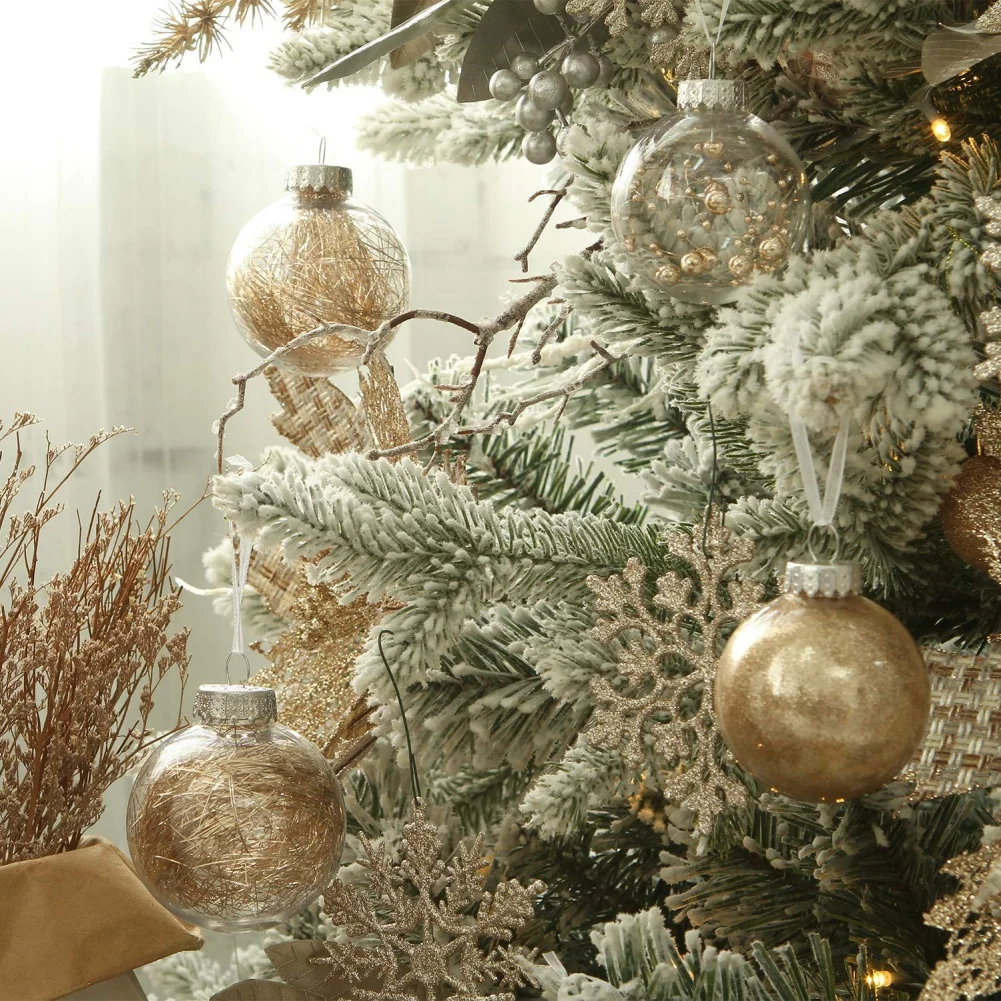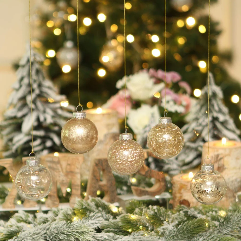4. Ganchos extraíbles-Cada adorno de bola viene con ganchos extraíbles con un cordón que le permite colgarlo fácilmente. Con los ganchos extraíbles, también puedes meter tus adornos favoritos en la bola transparente.